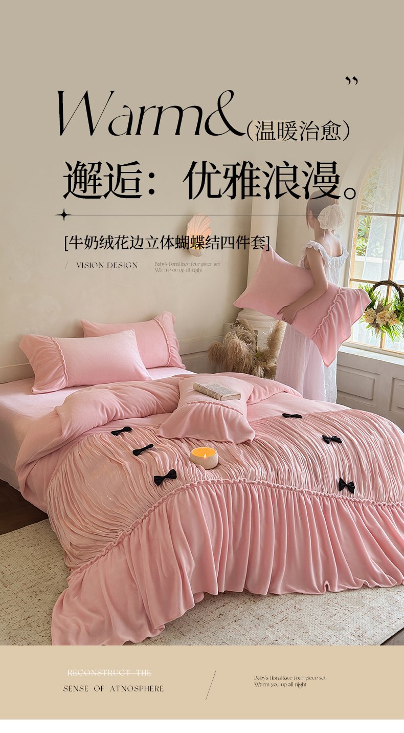 (总)豪美鑫 2025新款牛奶绒花边四件套-欧若拉系列