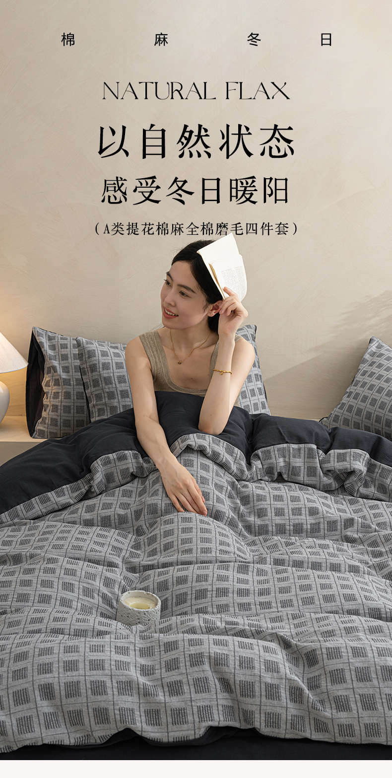 当前位置: 91家纺网 > 商品网购 > 床品套件 > 四件套 > 全棉普通四件套 > 小叮当家纺仓储工厂店 2025新款秋冬(热买家秀不断货)亲肤舒适棉麻提花全棉纯棉磨毛四件套禾屿禾屿系列 禾屿-兰
