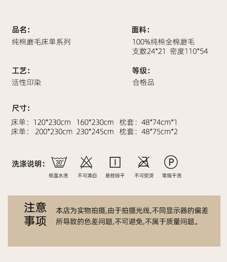 商品名称:(总)女子家纺 2025新款纯棉全棉磨毛单床单系列