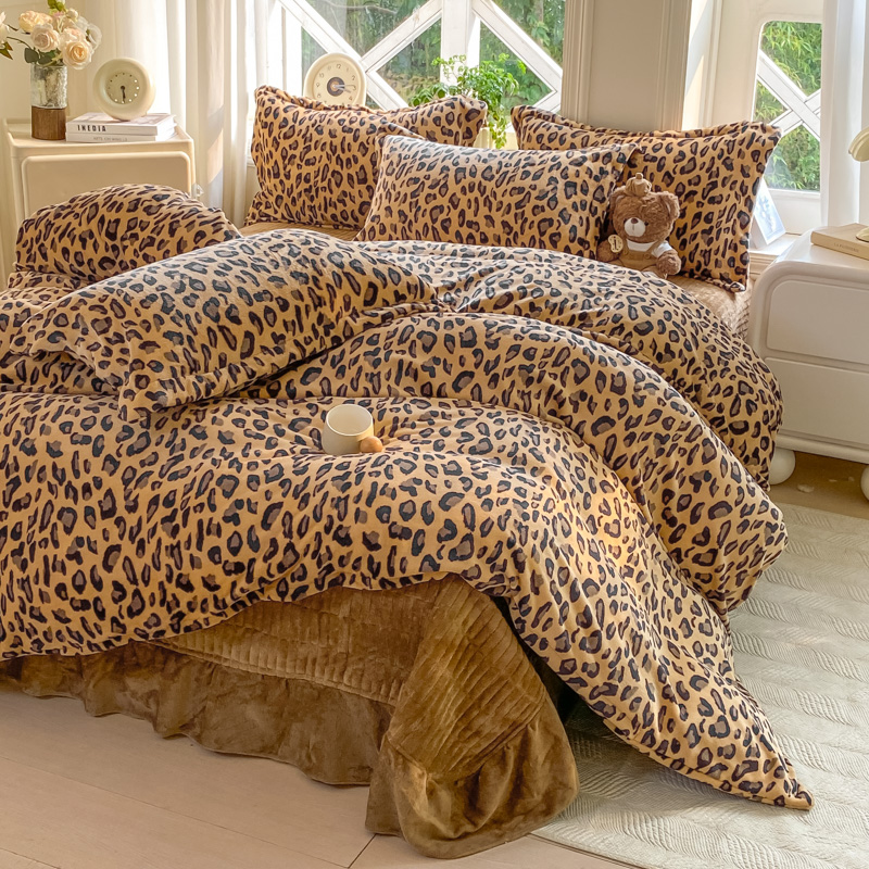 (总)尚美家纺 2025冬季新品豆豆绒高克重床盖被套四件套,豹纹咖色,蝴蝶飞舞,可爱熊,米彩色小波点,小波点米色,小波点肉色,紫色郁金香,香肠狗