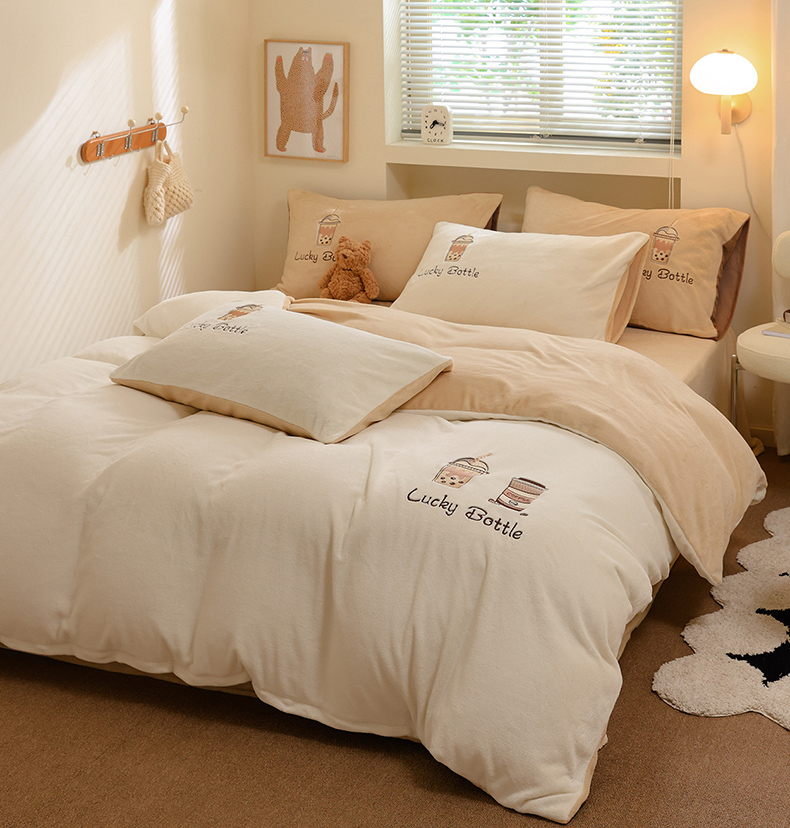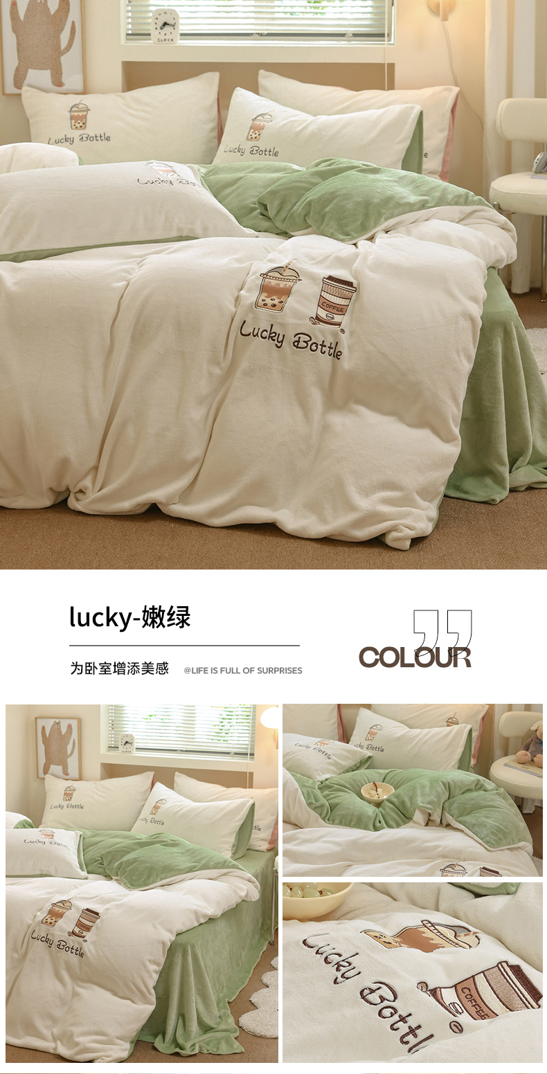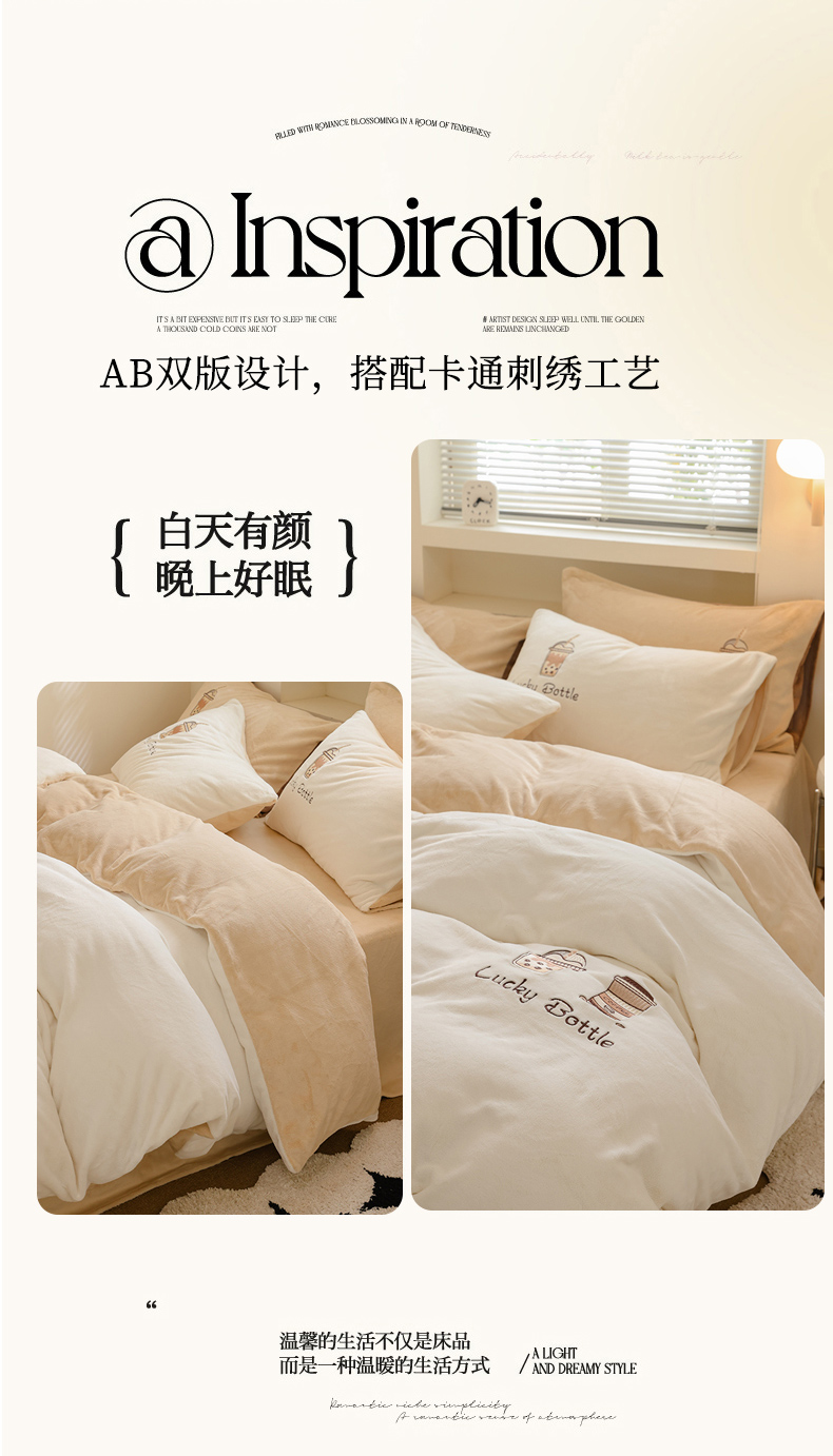 当前位置: 91家纺网 > 商品网购 > 床品套件 > 四件套 > 牛奶绒四件套 > ONE TWO ONE 121 新品【牛奶绒刺绣四件套】2025毛毯被子四件套单件床单被套床笠珊瑚绒牛奶绒冬被法兰绒兔毛绒Lucky Lucky-白咖