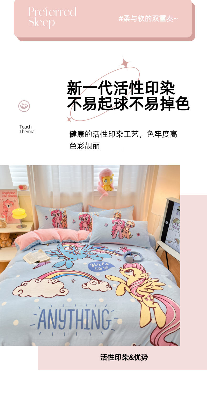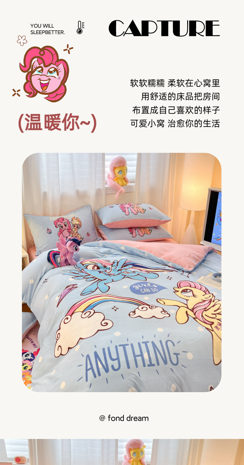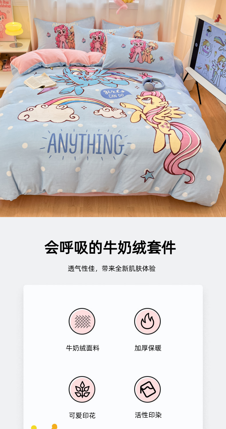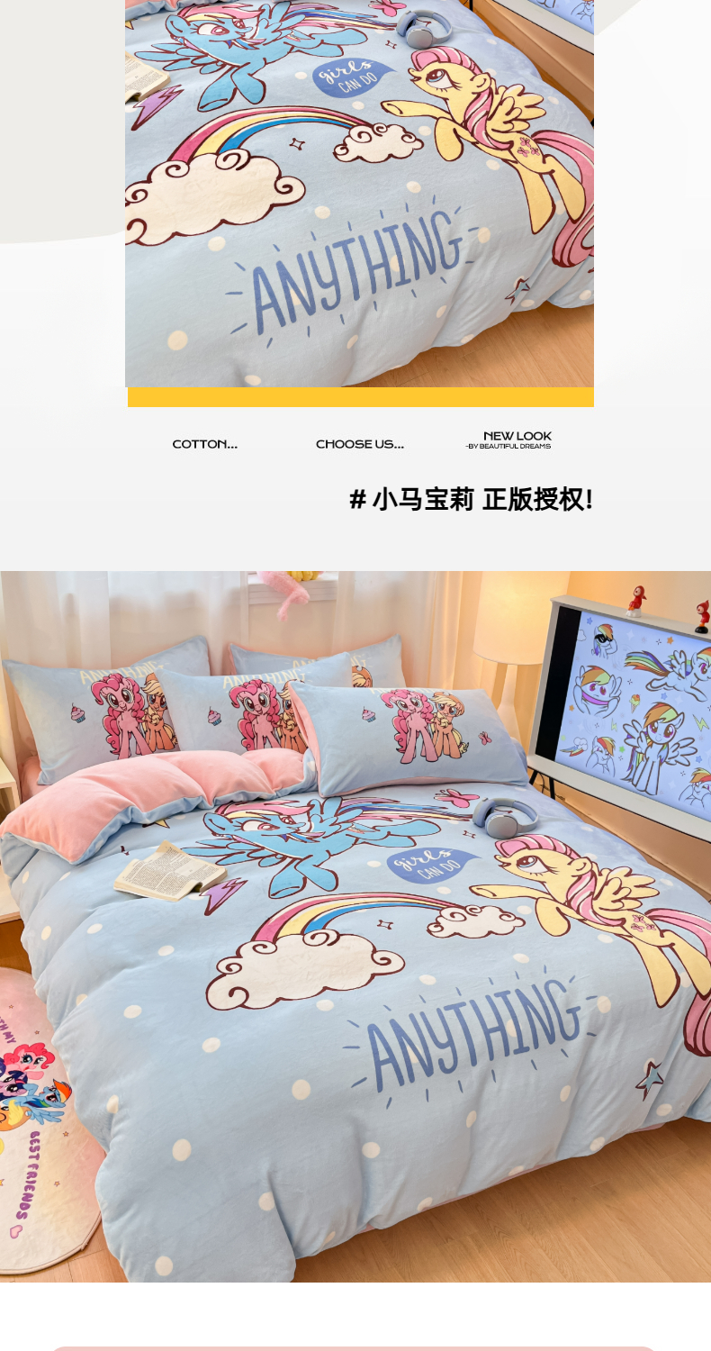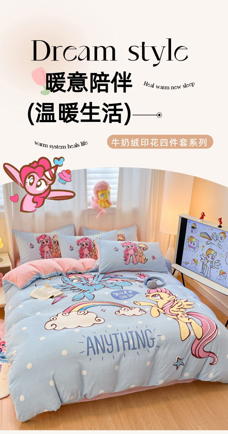 当前位置: 91家纺网 > 商品网购 > 床品套件 > 四件套 > 牛奶绒四件套 > 金爱家 2025新款正版小马宝莉授权大版卡通平网数码印花加厚高克重牛奶绒系列四件套 绒大版-友谊的魔力