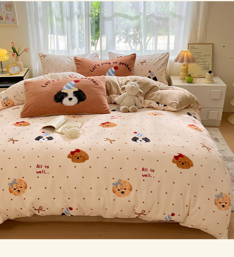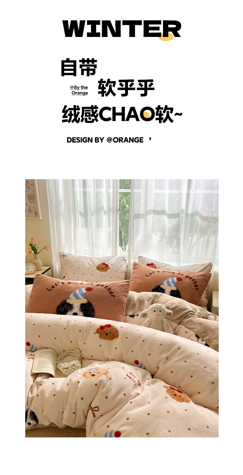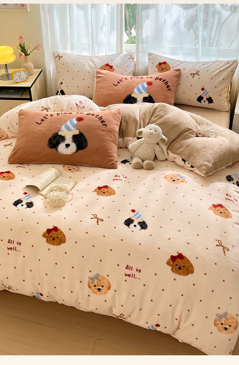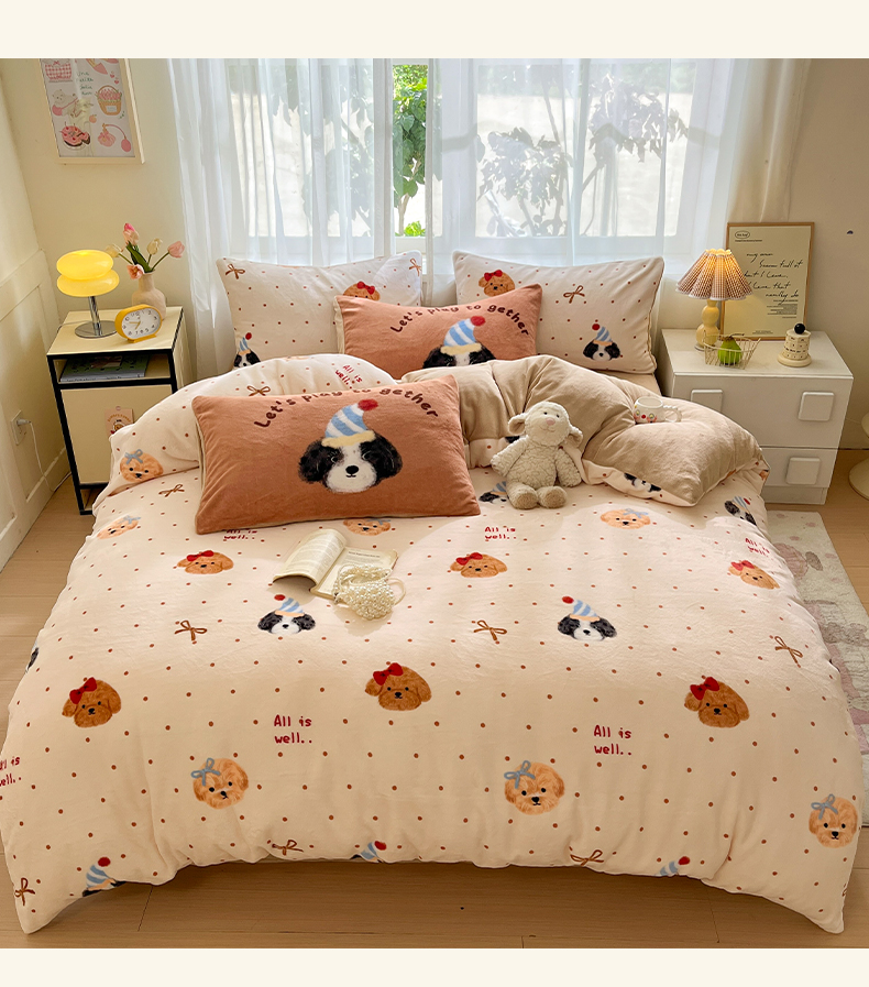 (总)如一 2025新款高克重大版数码印花牛奶绒四件套,毛毛狗,猫咪酱,俏皮狗,色彩猫,小熊仔,熊猫咖,游乐园,粉伙伴,拉兔咖,萌宠黄,萌宠绿,萌派对,围巾狗,线条狗,小粉喵,小花喵,小伙伴