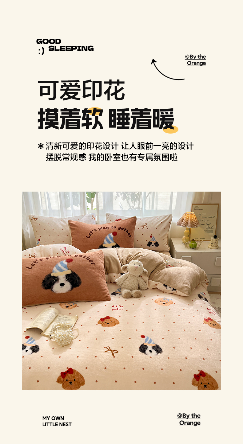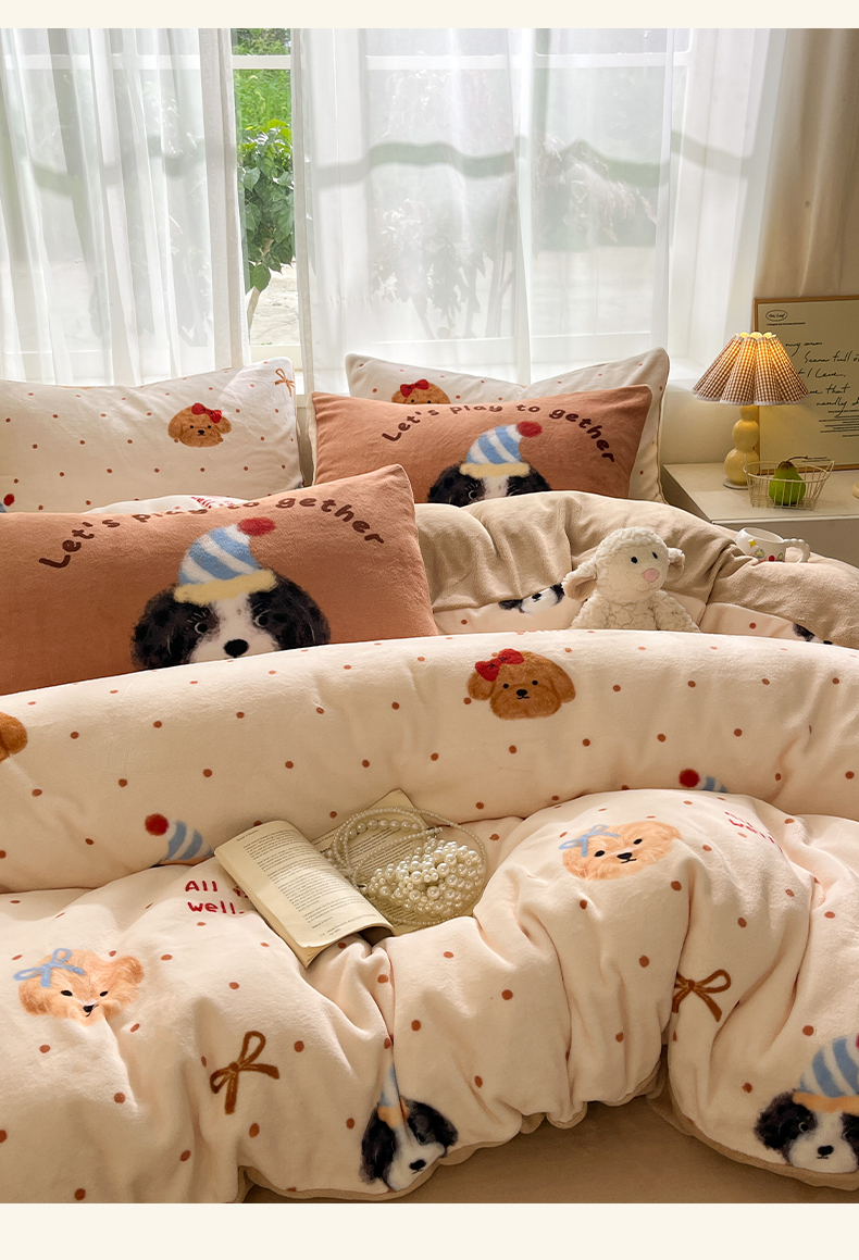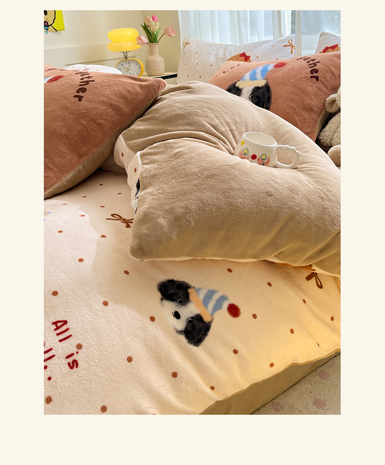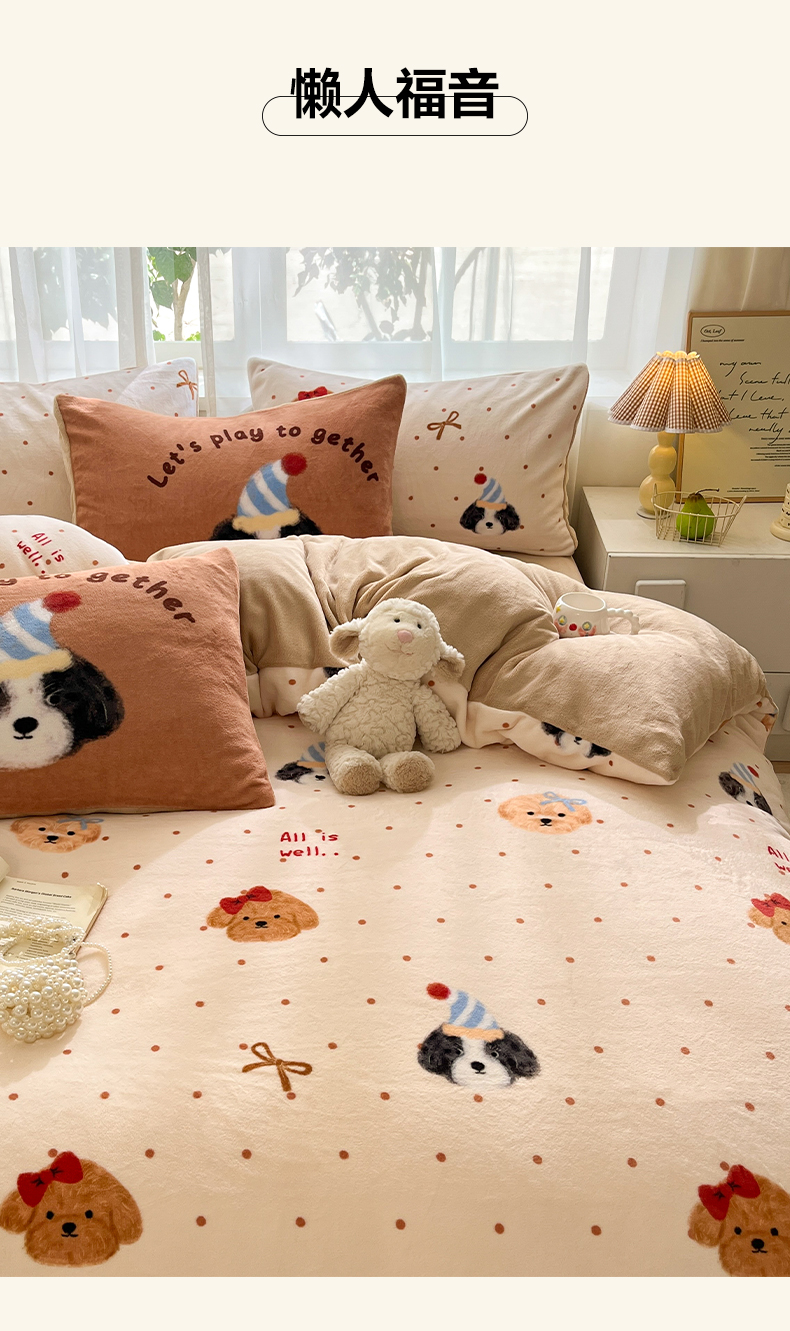 (总)如一 2025新款高克重大版数码印花牛奶绒四件套,毛毛狗,猫咪酱,俏皮狗,色彩猫,小熊仔,熊猫咖,游乐园,粉伙伴,拉兔咖,萌宠黄,萌宠绿,萌派对,围巾狗,线条狗,小粉喵,小花喵,小伙伴