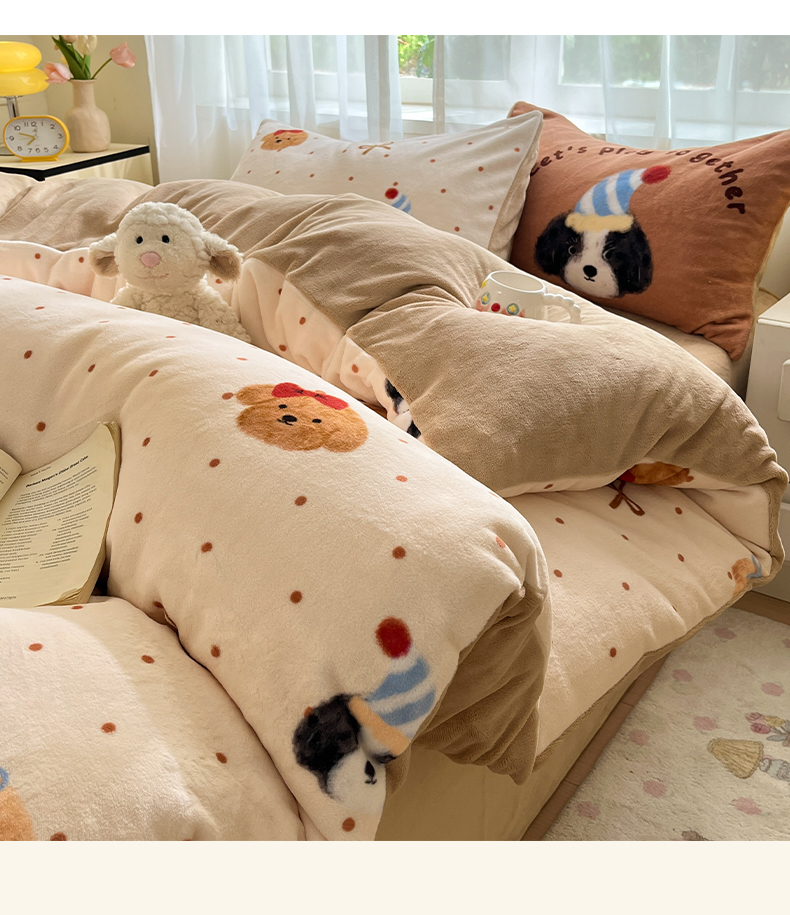 商品名称:如一 2025新款高克重卡通印花牛奶绒四件套第二批 小伙伴