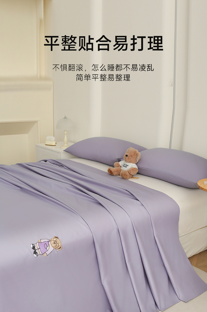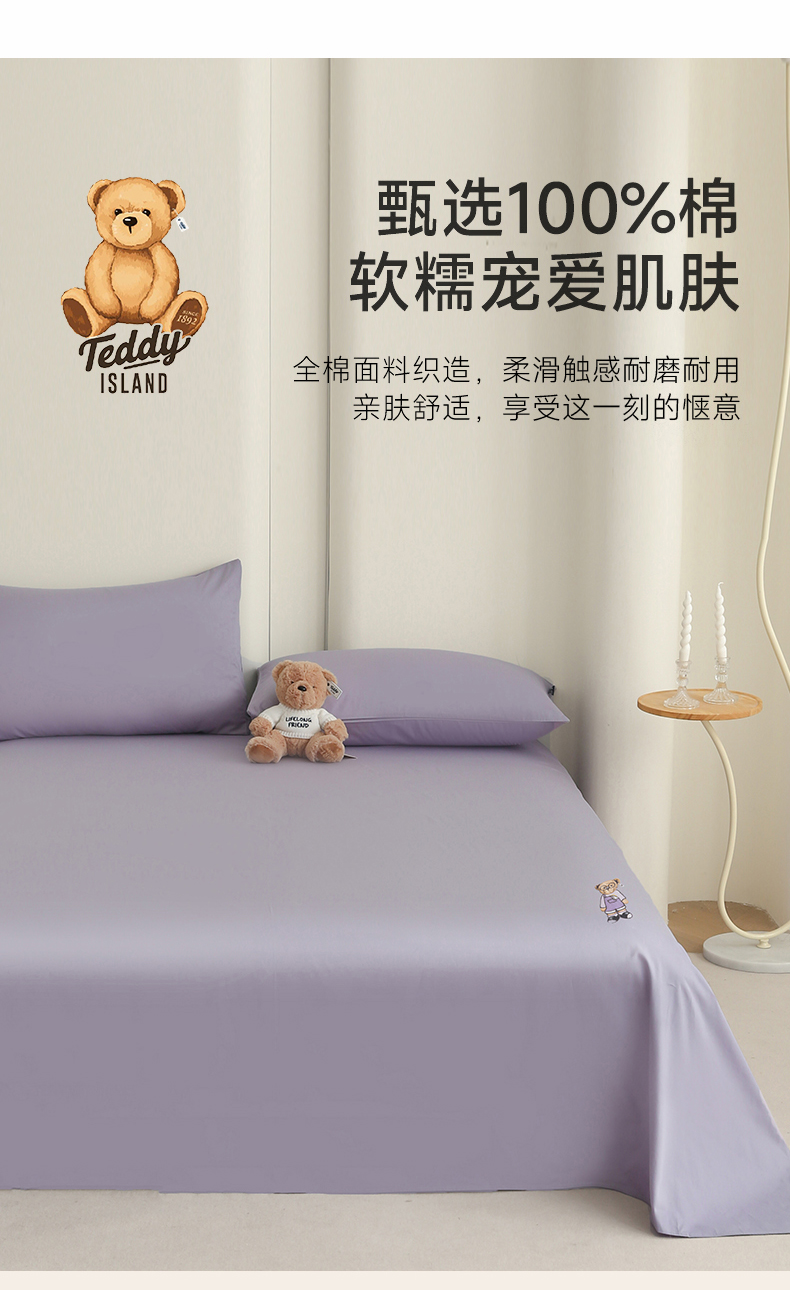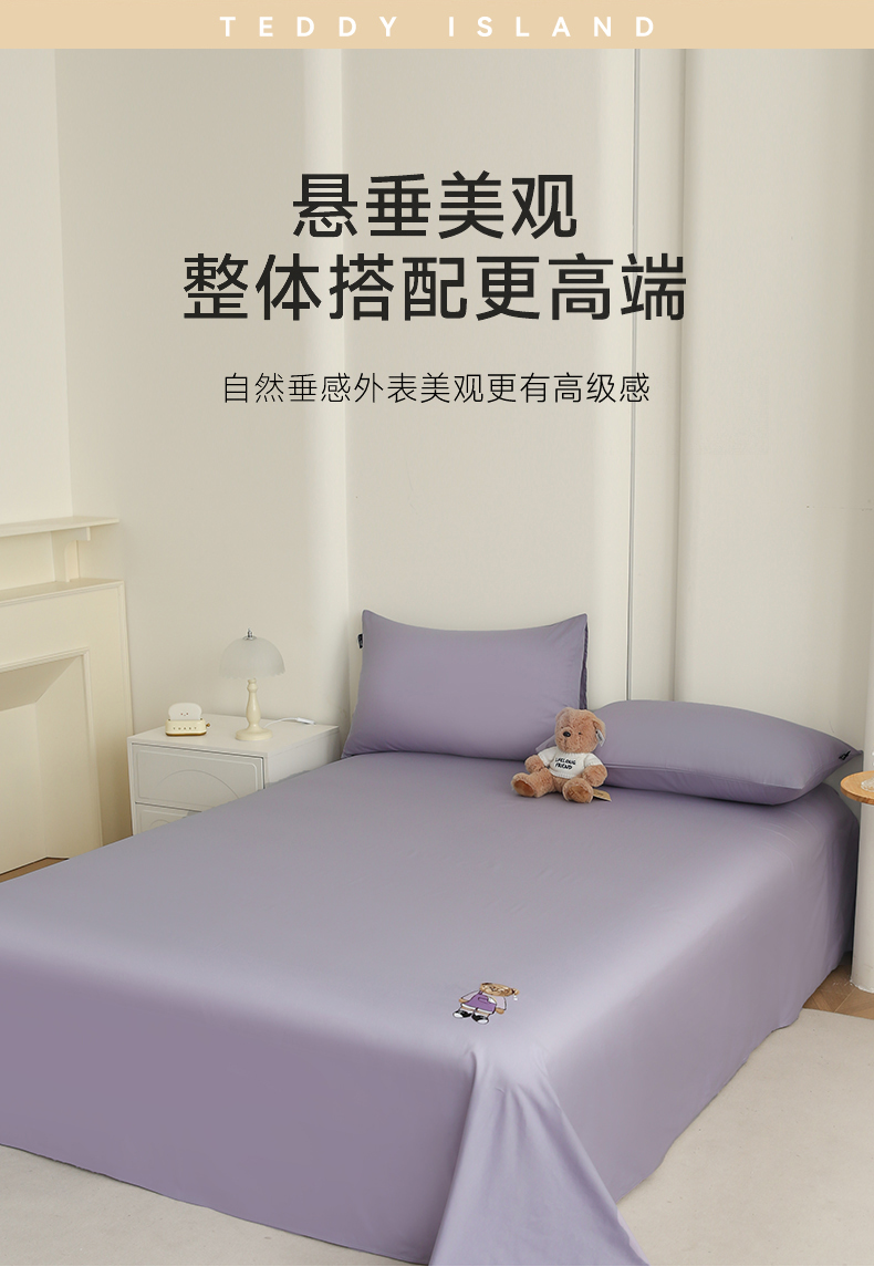 • 91家纺网 家纺一手货源 找家纺 泰迪爱兰Teddy ISLAND  2026新款全棉40S单品刺绣床单 香芋紫