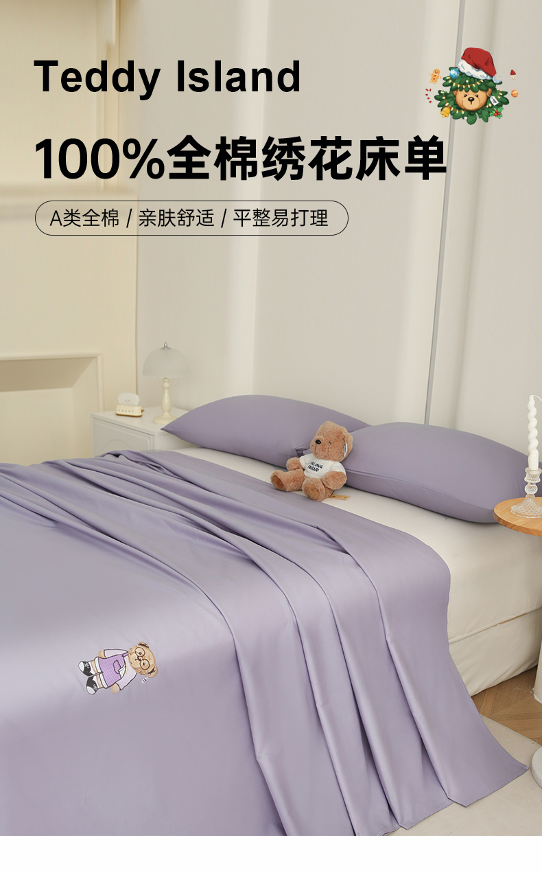 泰迪爱兰Teddy ISLAND 2026新款全棉40S单品刺绣床单 香芋紫