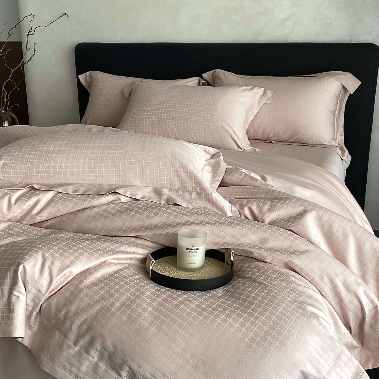 商品名称:时亿家居 2025新款100支染色长绒棉提花四件套 蜜可