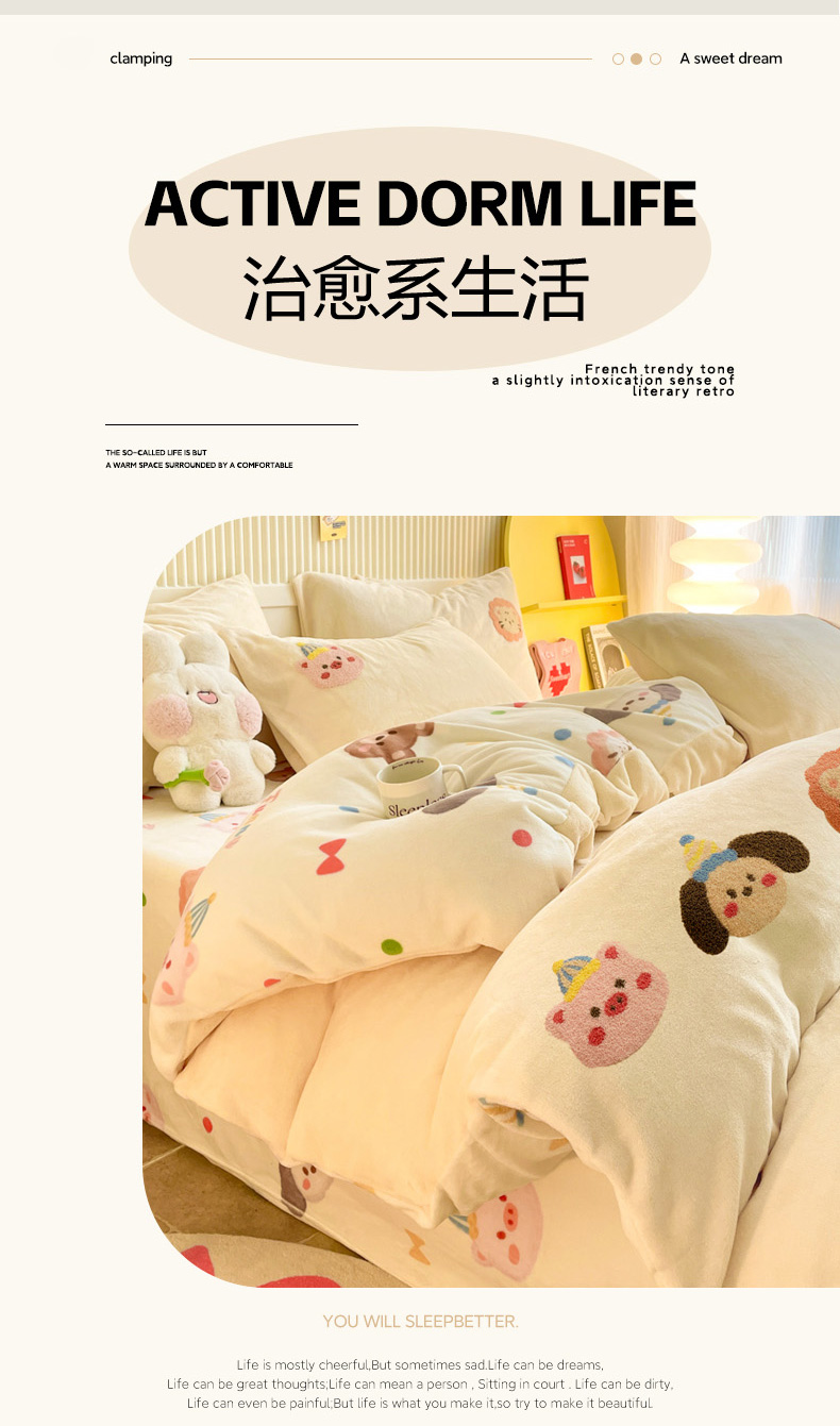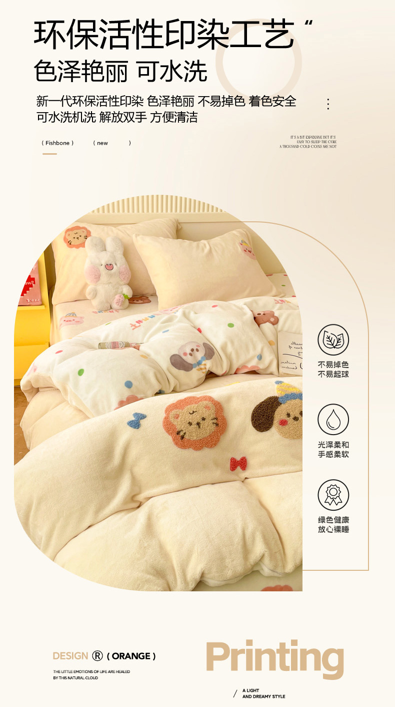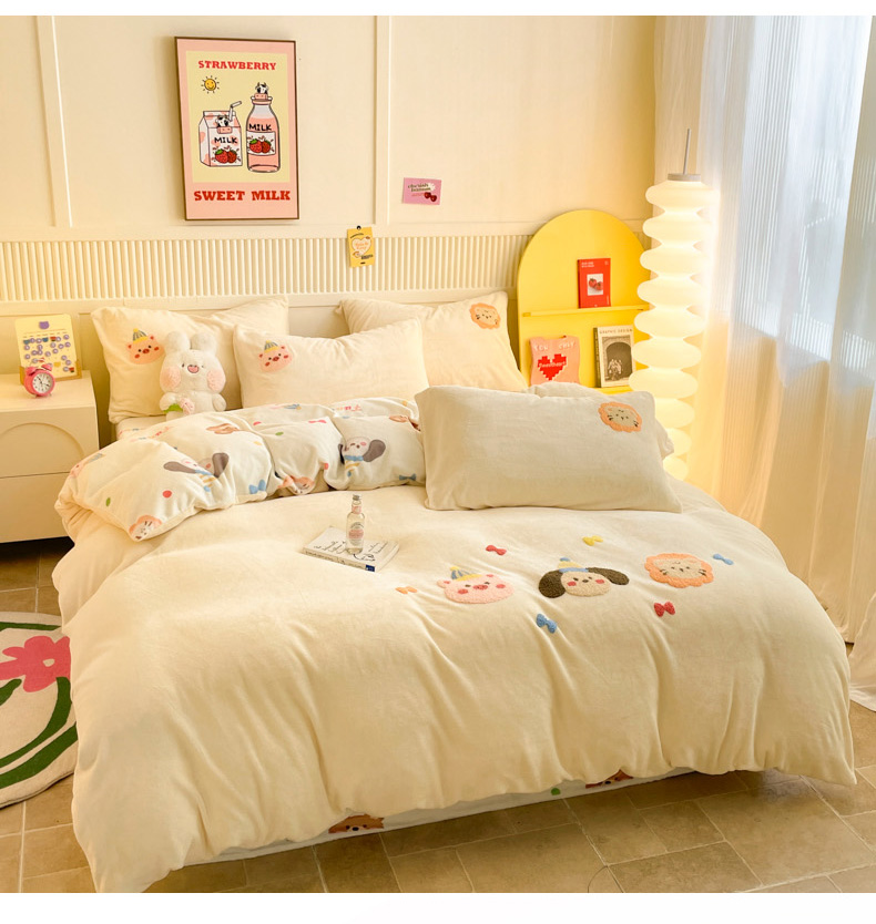(总)寐居家纺 2025新款毛球毛巾绣牛奶绒四件套,毛球球·巴克汪仔,毛球球·豆蔻女孩,毛球球·奶黄拉布,毛球球·心动KT喵,组合图仅供展示不可下单