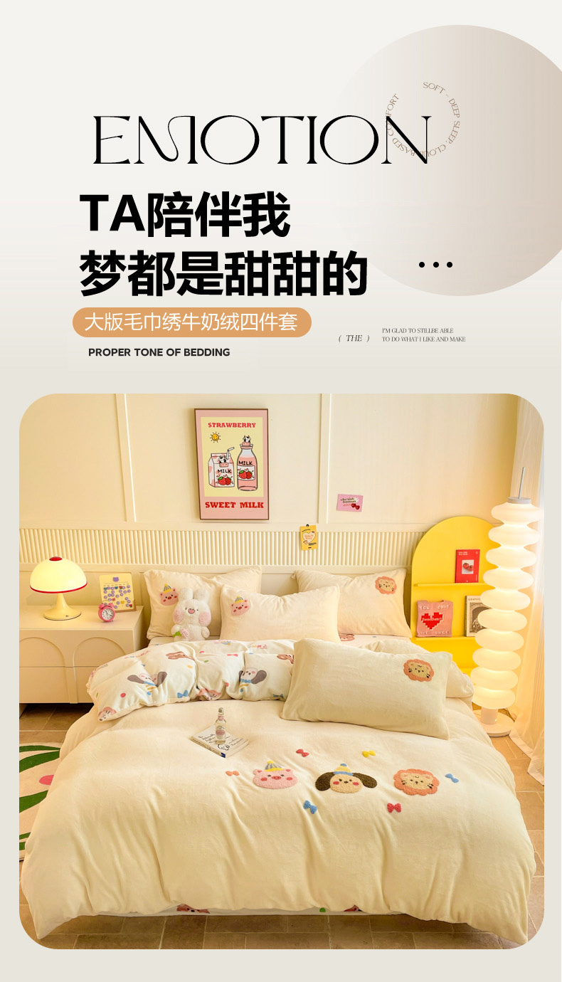 (总)寐居家纺 2025新款牛奶绒大版毛巾绣床单款四件套