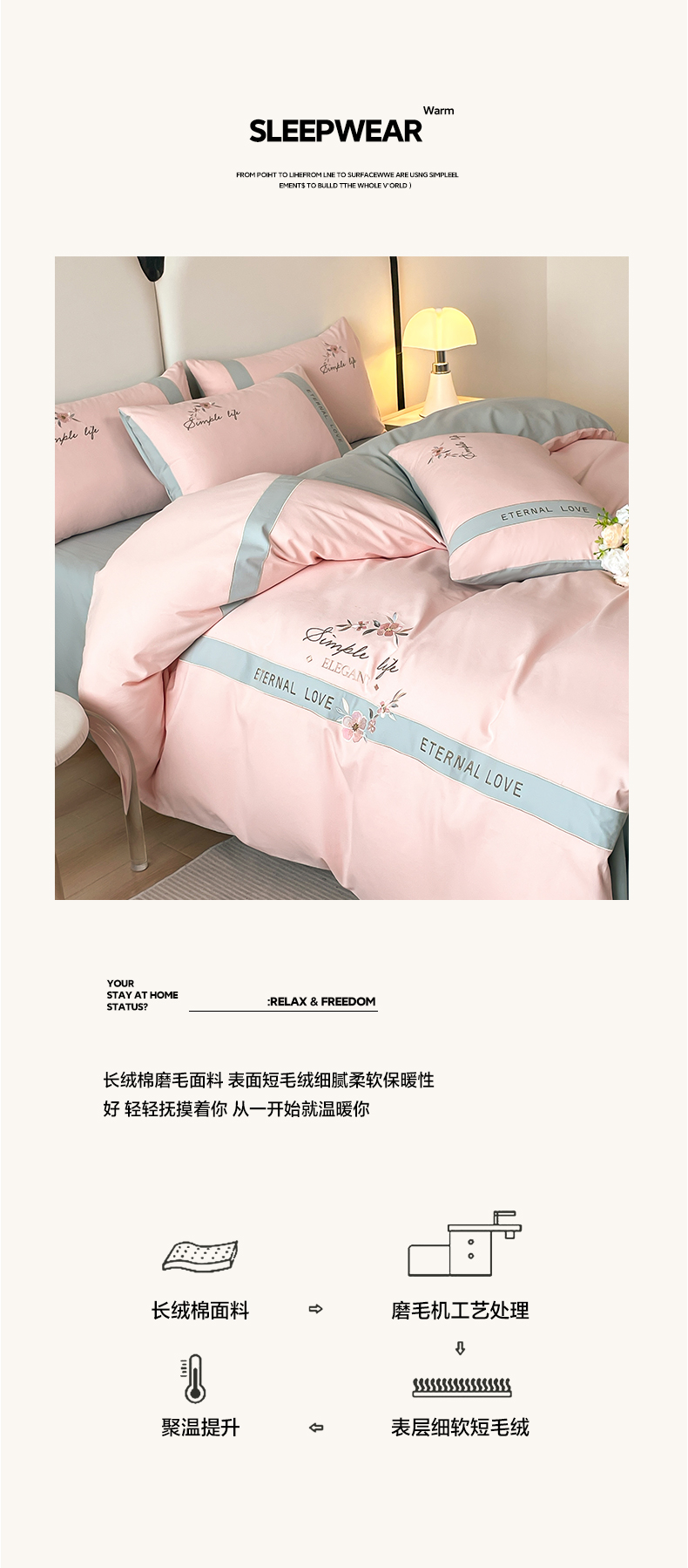 (总)桃园 2025新款纯棉全棉长绒棉磨毛四件套不掉毛-羽翼 (高端礼盒),羽翼-白兰,羽翼-宾利蓝,羽翼-豆沙粉,羽翼-飘蓝