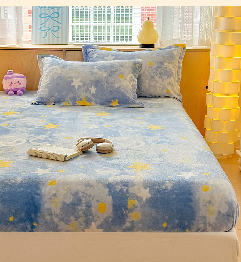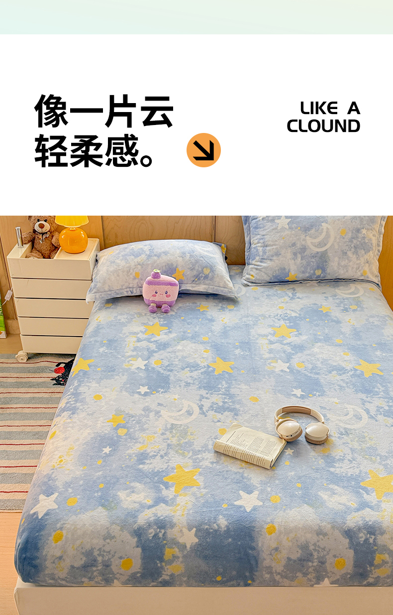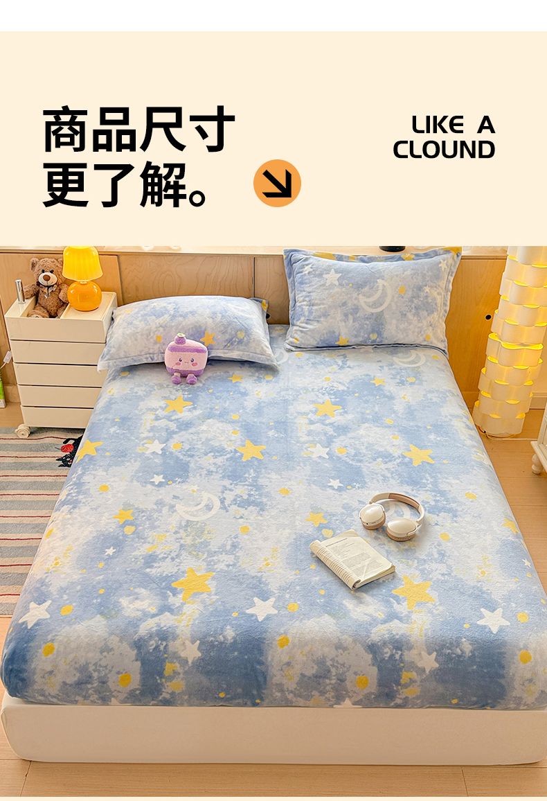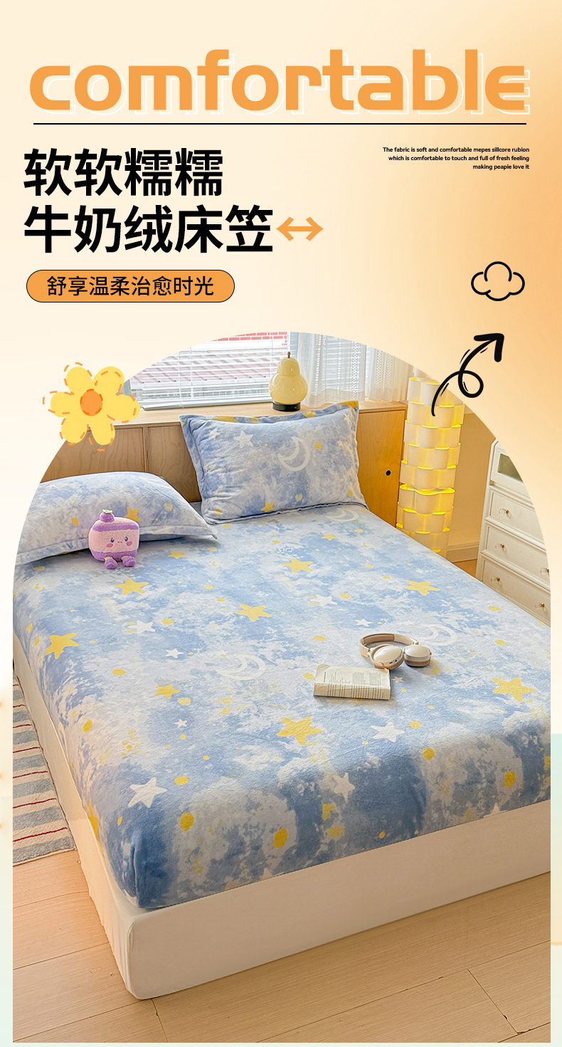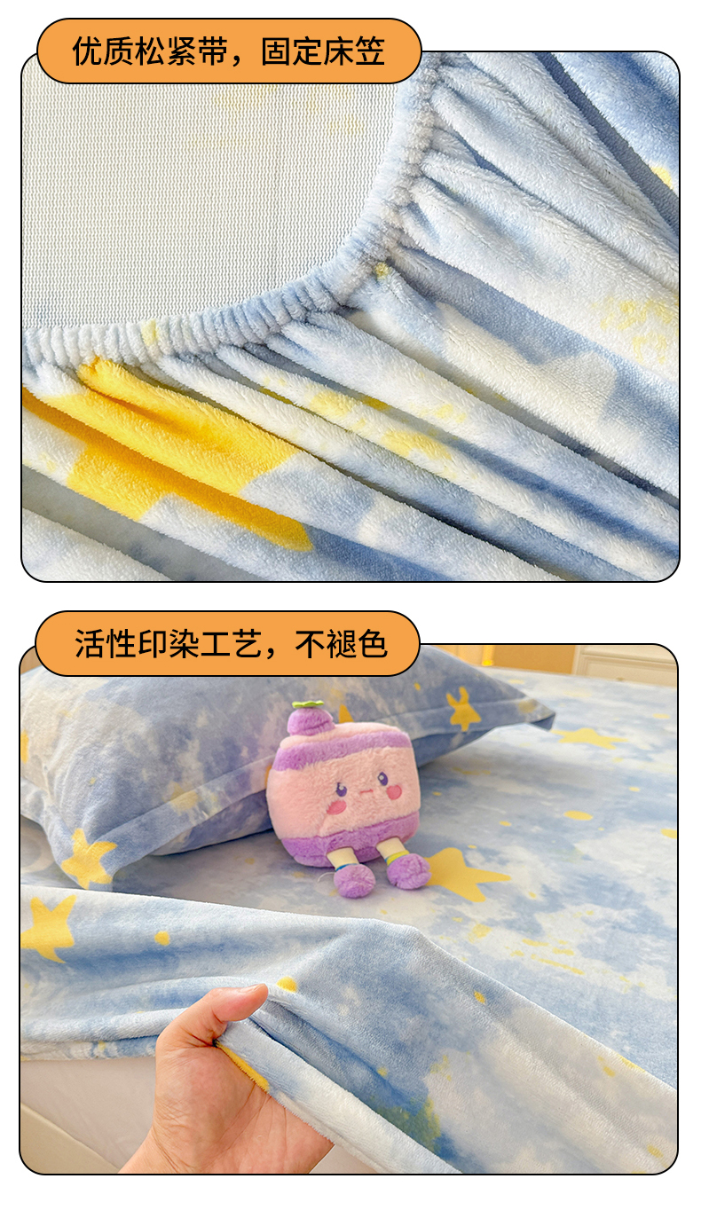 名兮家居 2025新款高克重印花牛奶绒单床笠床笠单件 满天星