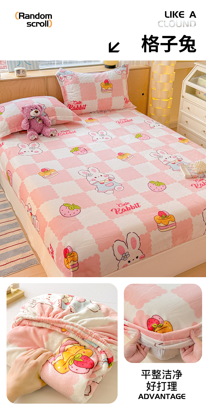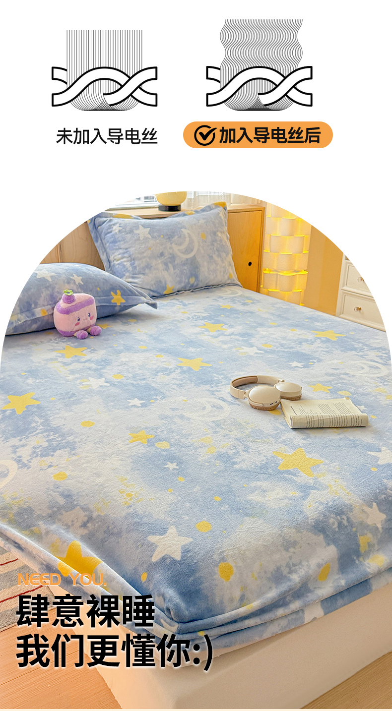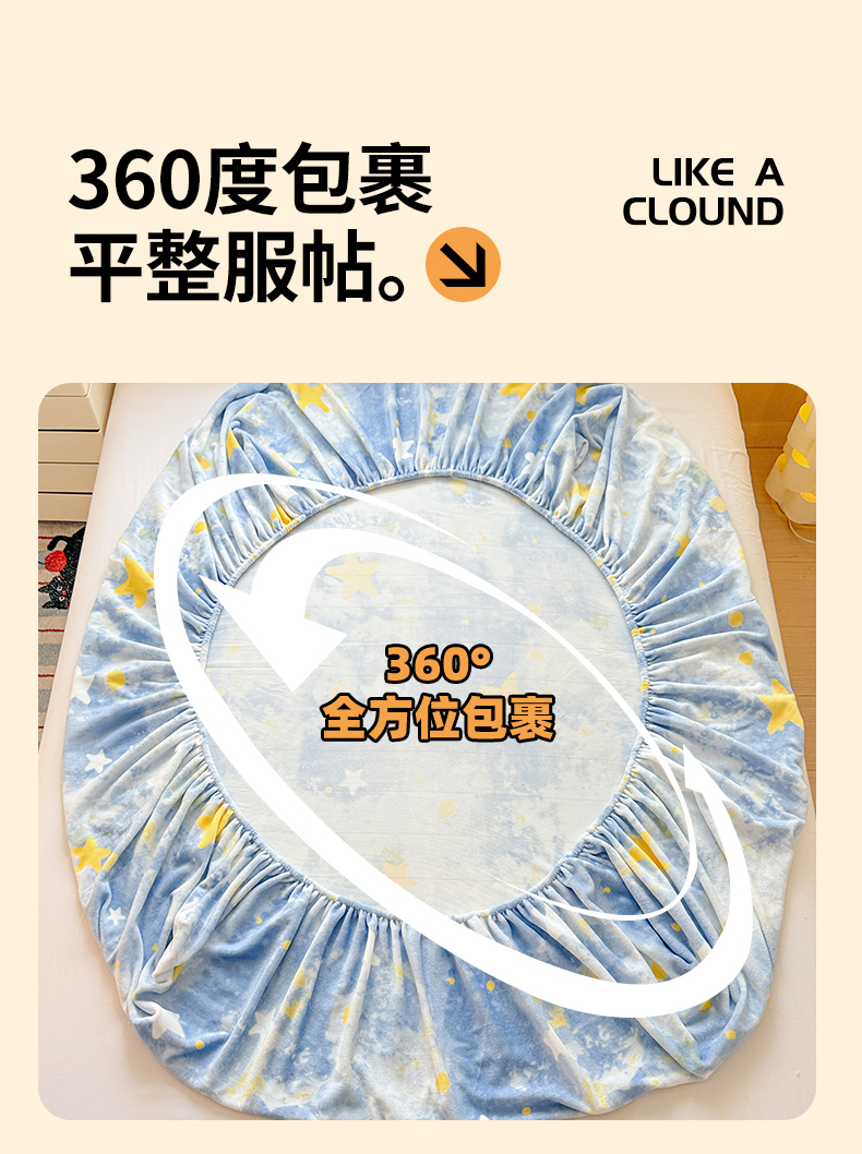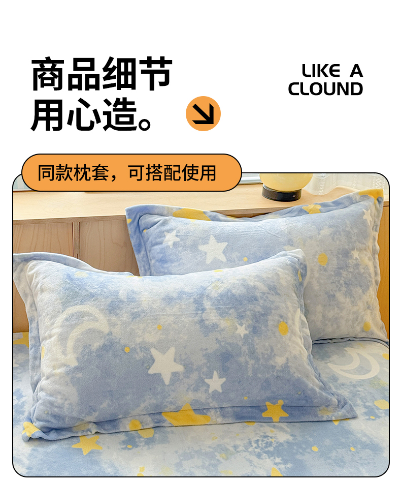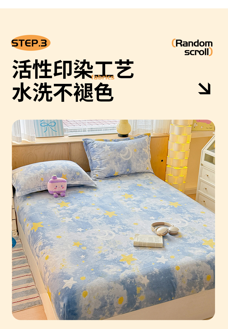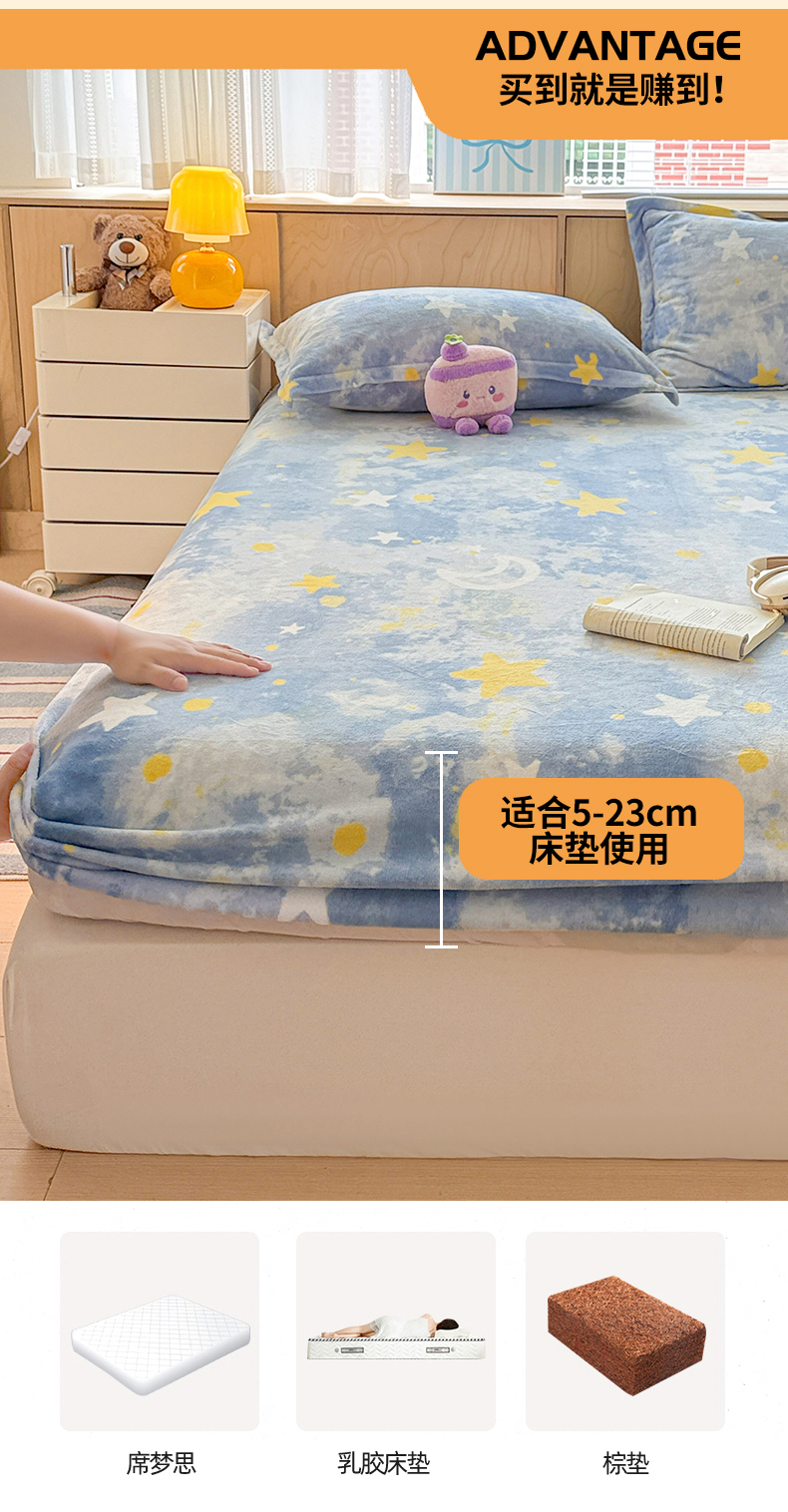 名兮家居 2025新款高克重印花牛奶绒单床笠床笠单件 满天星