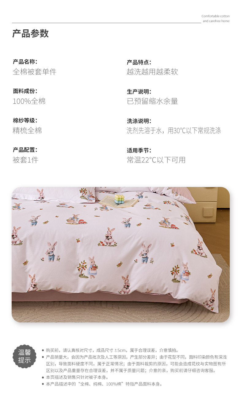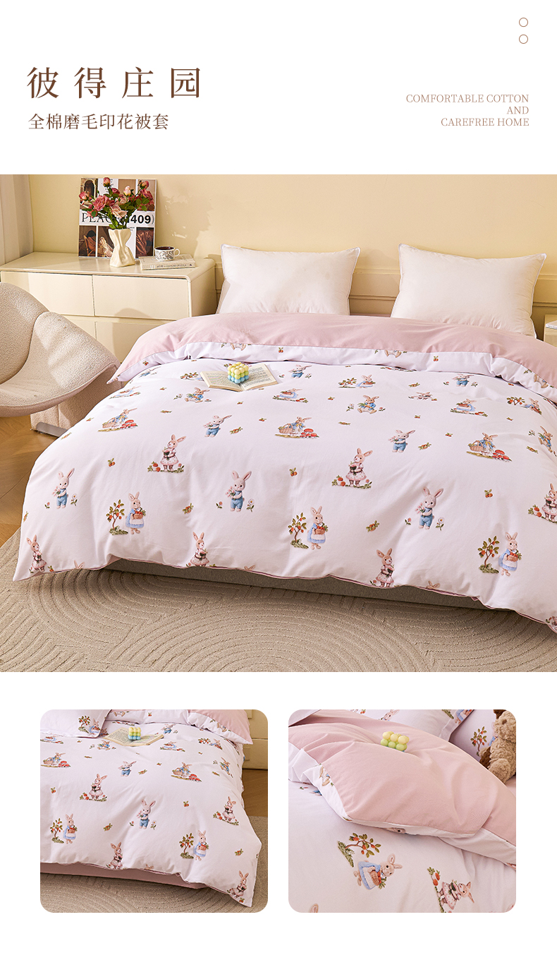 商品名称:元元家居(元元被业) 2025秋冬新款全棉纯棉磨毛印花单被套 邂逅粉