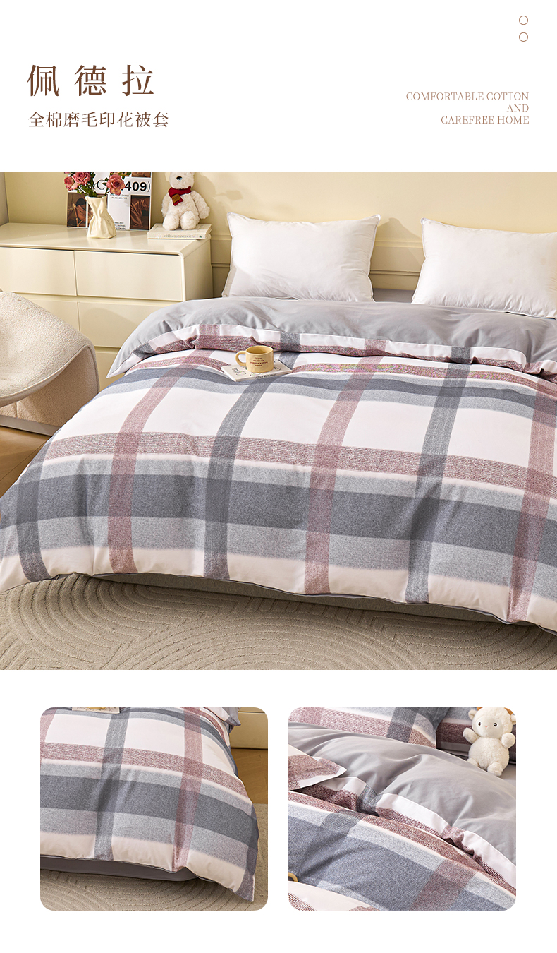 元元家居(元元被业) 2025秋冬新款全棉纯棉磨毛印花单被套 邂逅粉