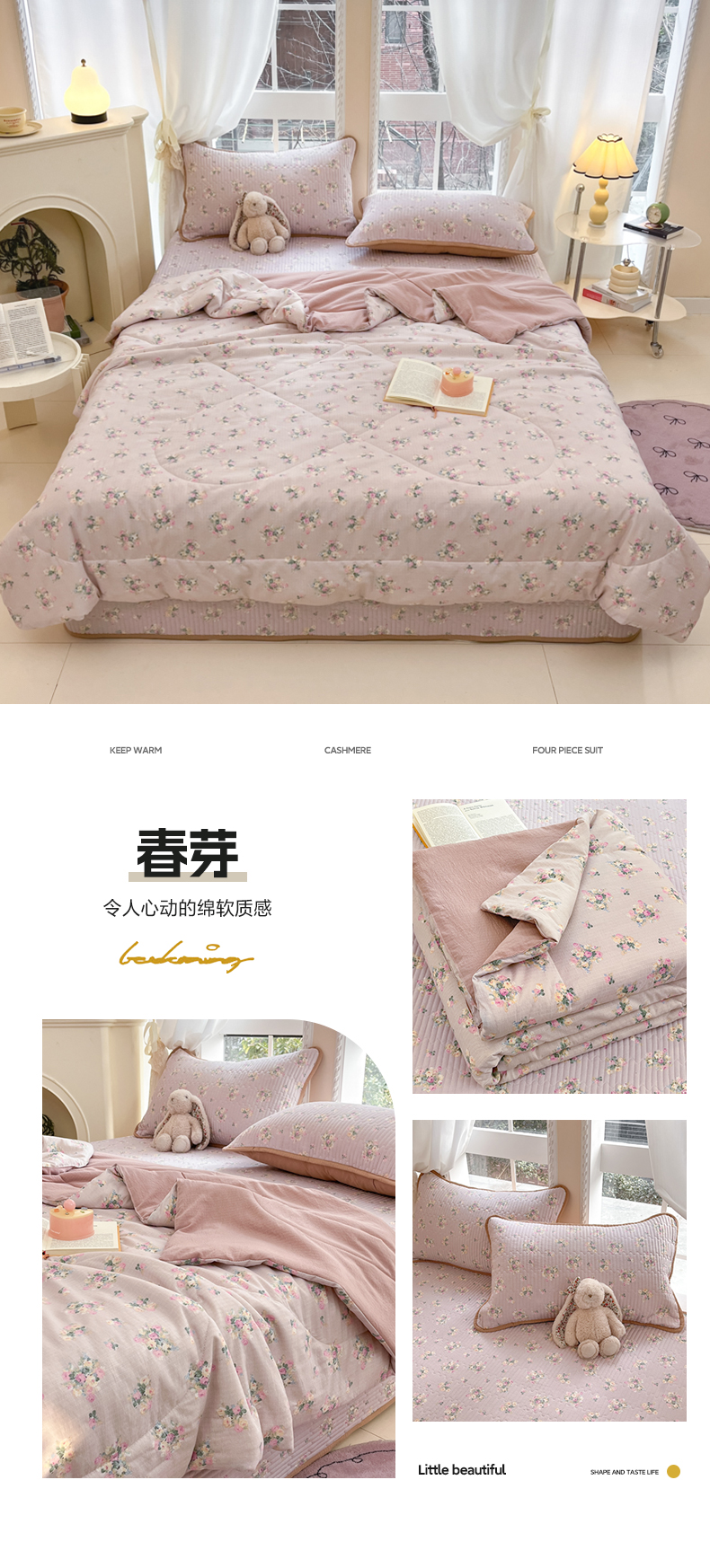 • 91家纺网 家纺一手货源 找家纺 澜妃 2025春夏新款云感双层纱夏被夏凉被空调被四件套 织梦