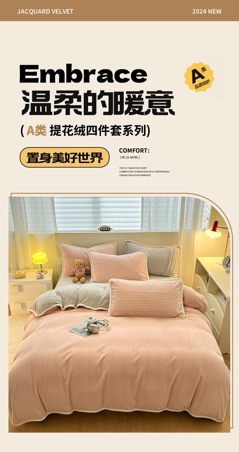 当前位置: 91家纺网 > 商品网购 > 床品套件 > 四件套 > 牛奶绒四件套 > 小叮当家纺仓储工厂店 2025新款亲肤舒适成品提花包边牛奶绒四件套-提花 提花-黄灰