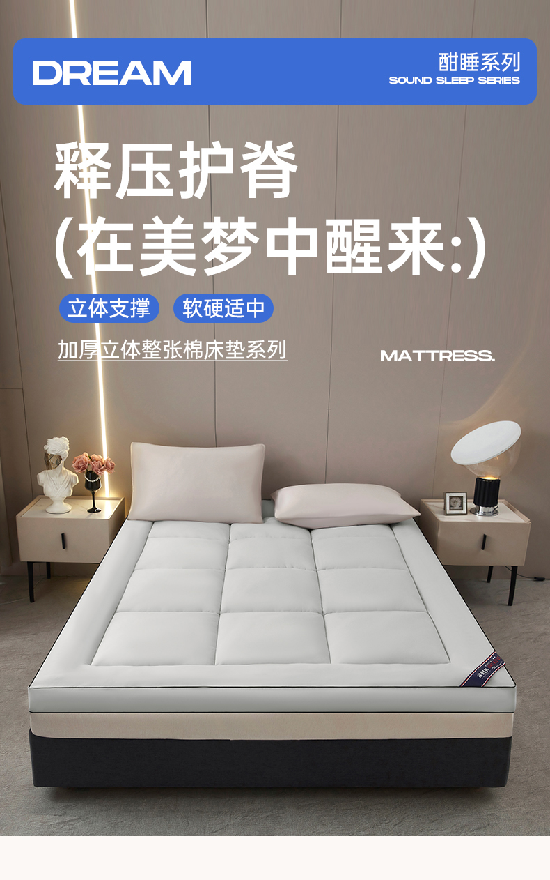 当前位置: 91家纺网 > 商品网购 > 床垫/床褥 > 普通床垫 > 小叮当家纺仓储工厂店 2025新款加厚立体整张棉酒店学生床垫抗菌云尚亲肤软床垫垫子 山峰灰
