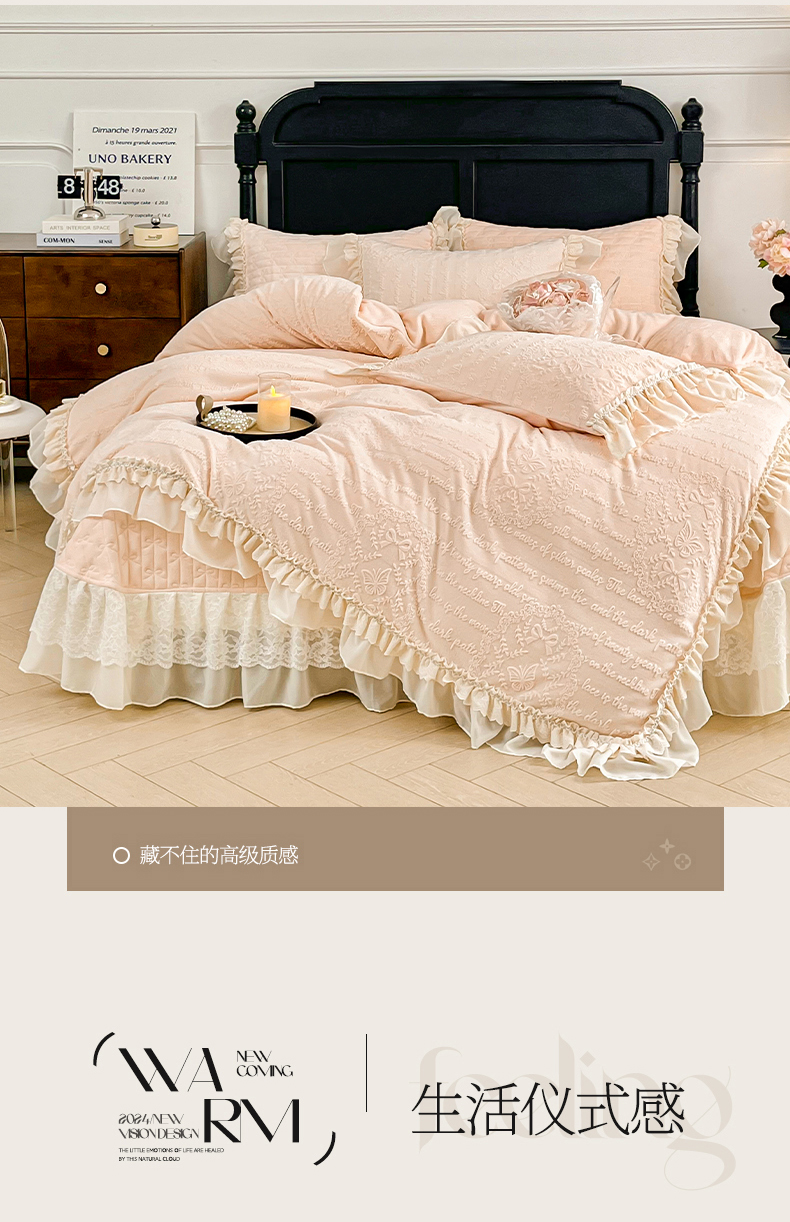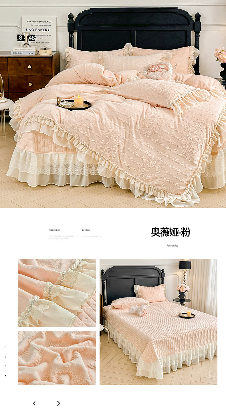 当前位置: 91家纺网 > 商品网购 > 床品套件 > 四件套 > 牛奶绒四件套 > 胜权家纺 2025秋冬新款A类全消光高克重5D雕花牛奶绒夹棉床盖四件套系列 奥威亚-粉