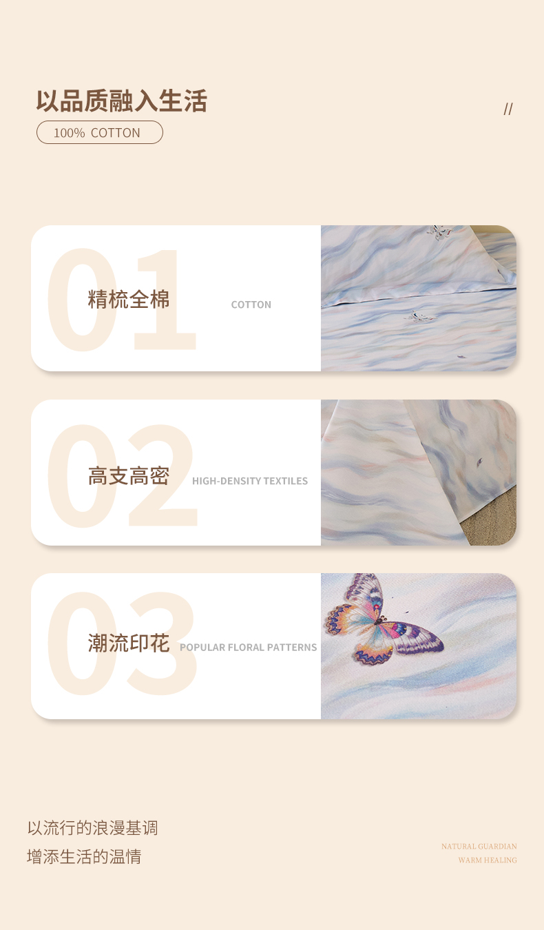 (总)元元家居(元元被业) 2025新款百支全棉高精密厚织系列四件套-恬蕴系列,恬蕴-贝壳白,恬蕴-玛瑙红,恬蕴-樱花粉,恬蕴-远山灰,恬蕴-月光金