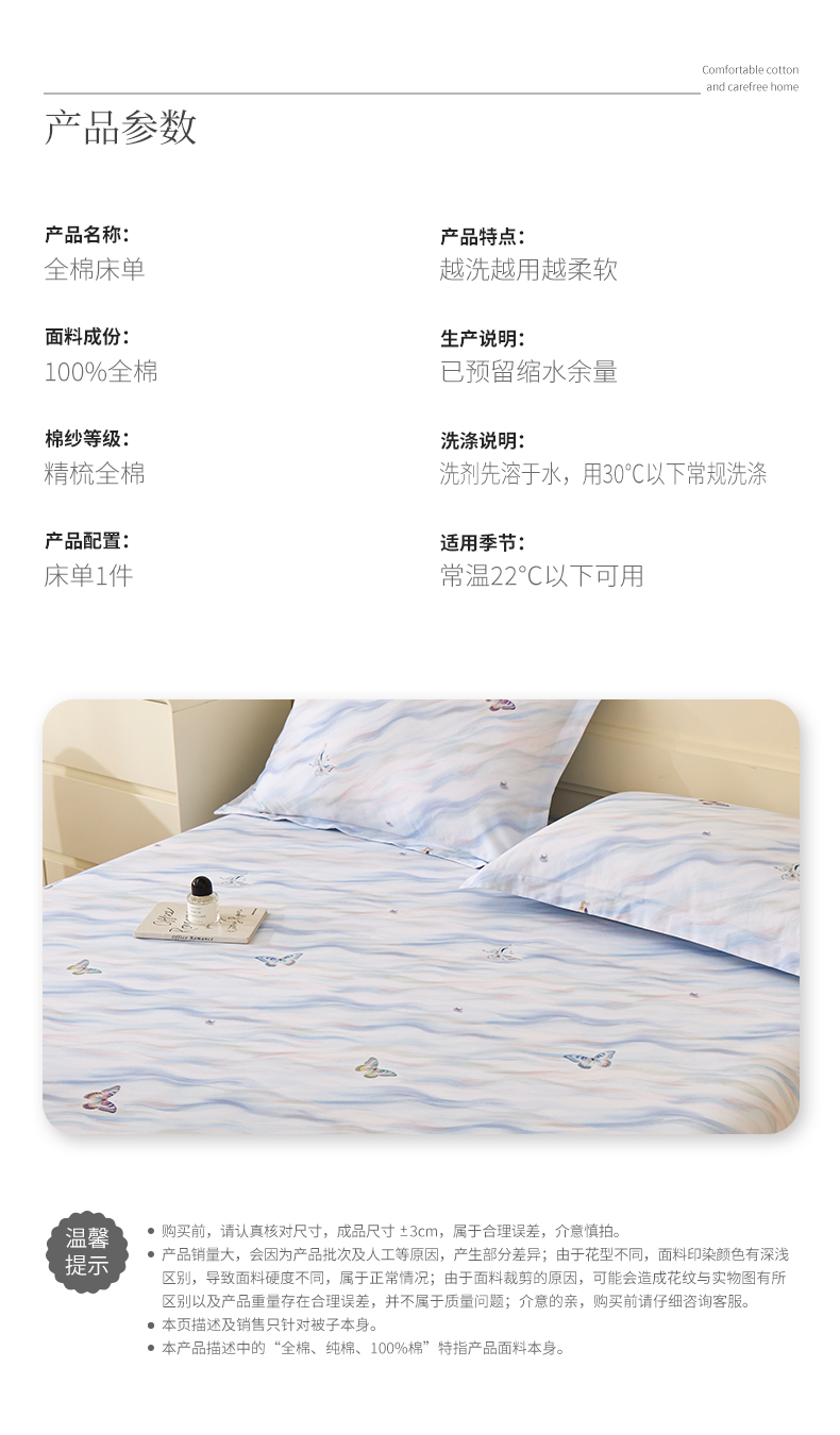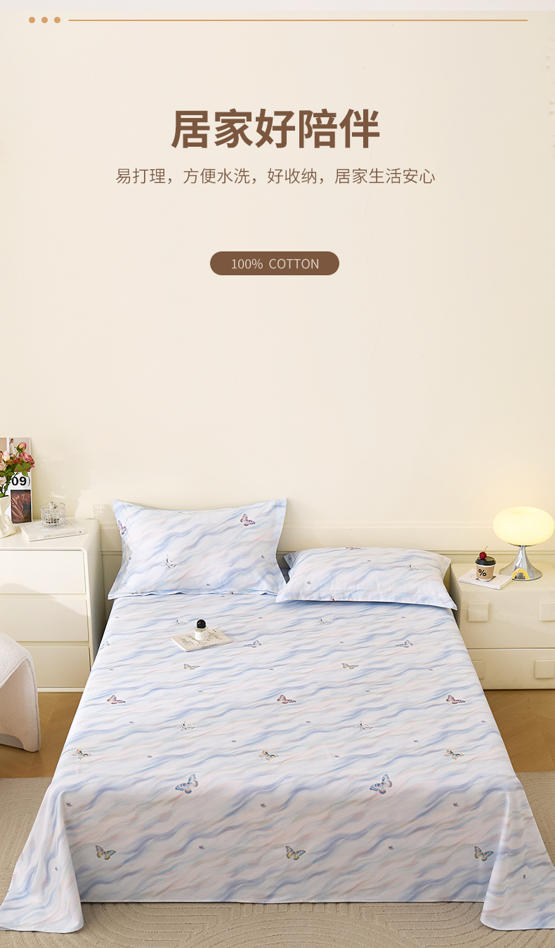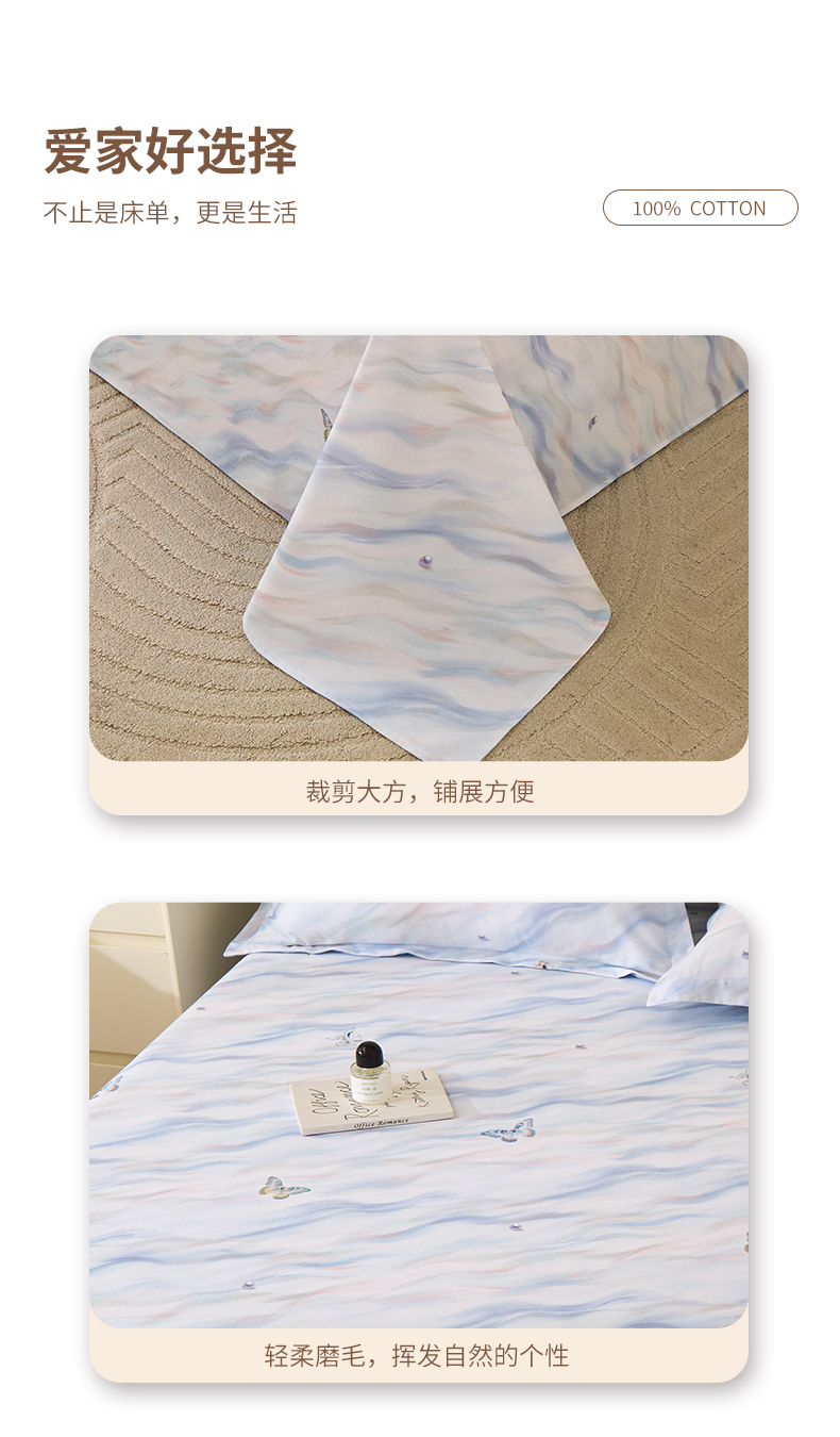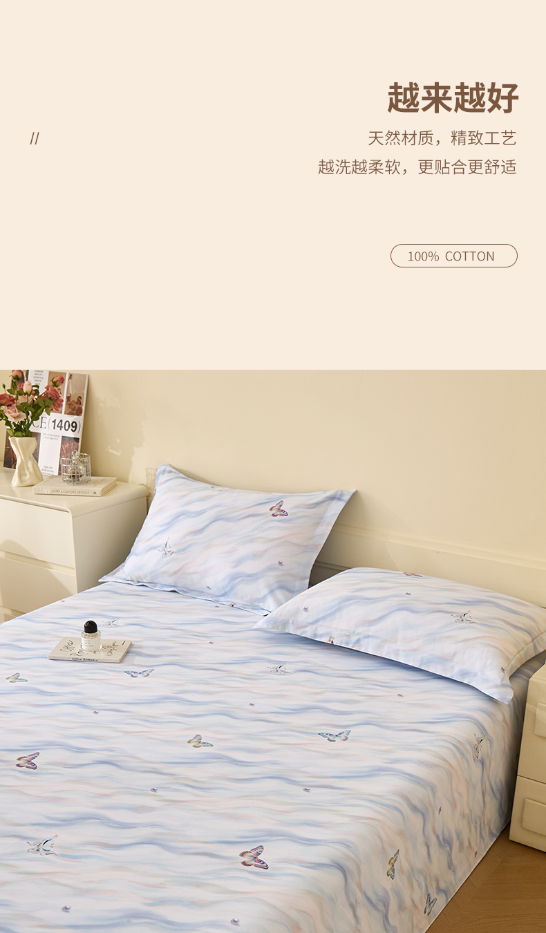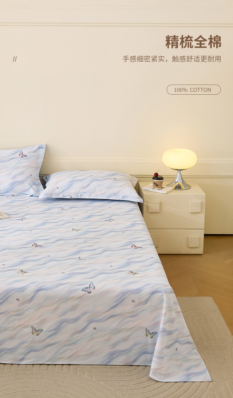 商品名称:元元家居(元元被业) 2025秋冬新款全棉纯棉磨毛印花单床单 蝶梦星河