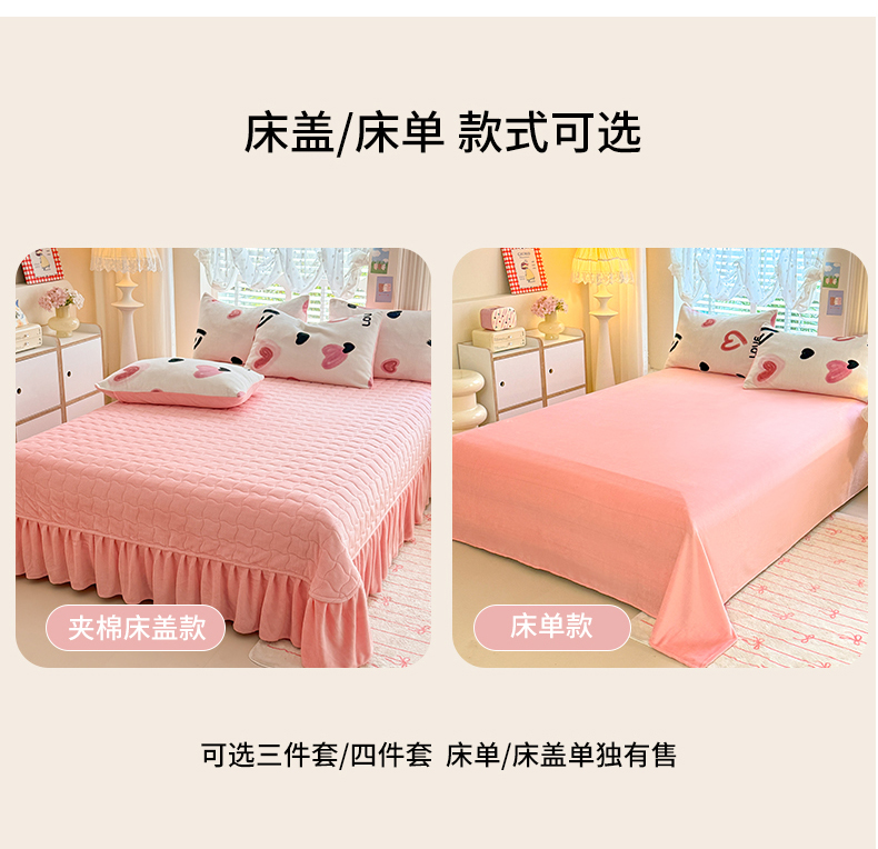 (总)金盛皇朝家纺 2024新款双层花边牛奶绒夹棉床盖四件套,繁花米兔,花影如梦,萌宝熊猫,甜甜宝贝,兔兔吉祥,心心相印,悠悠米咖,紫韵格调