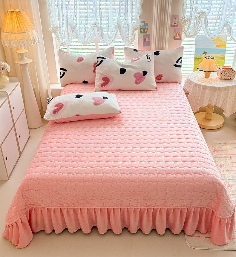 (总)金盛皇朝2025韩版公主风绗绣三层夹棉床盖学生宿舍床单,波点,彩虹桥,果粒橙,灵动花瓣,莫奈花园,小爱心,心动时光