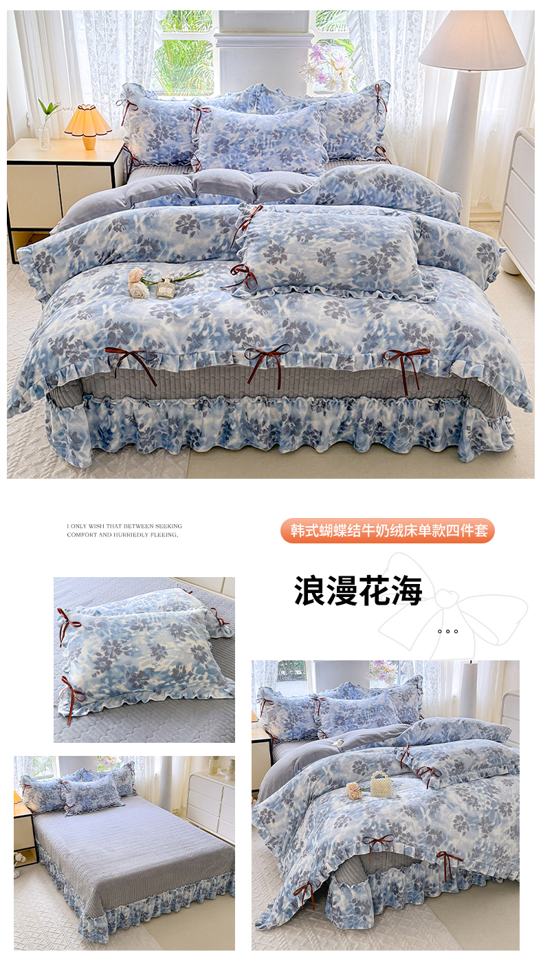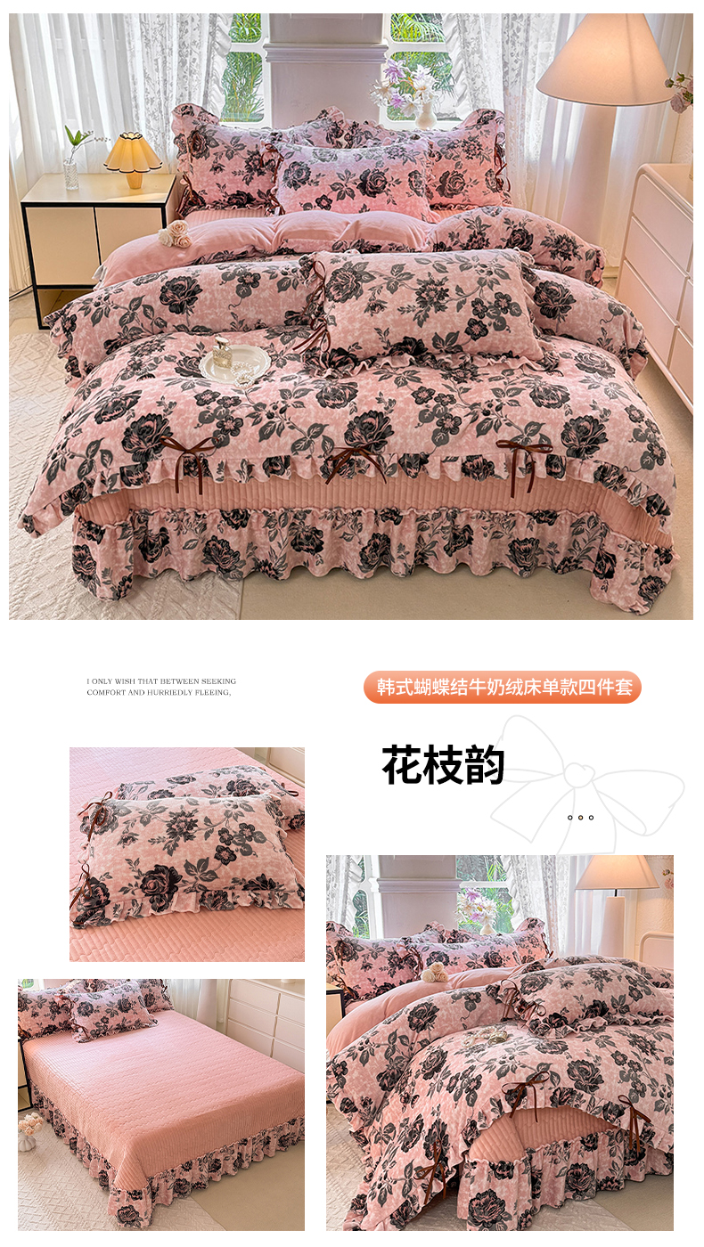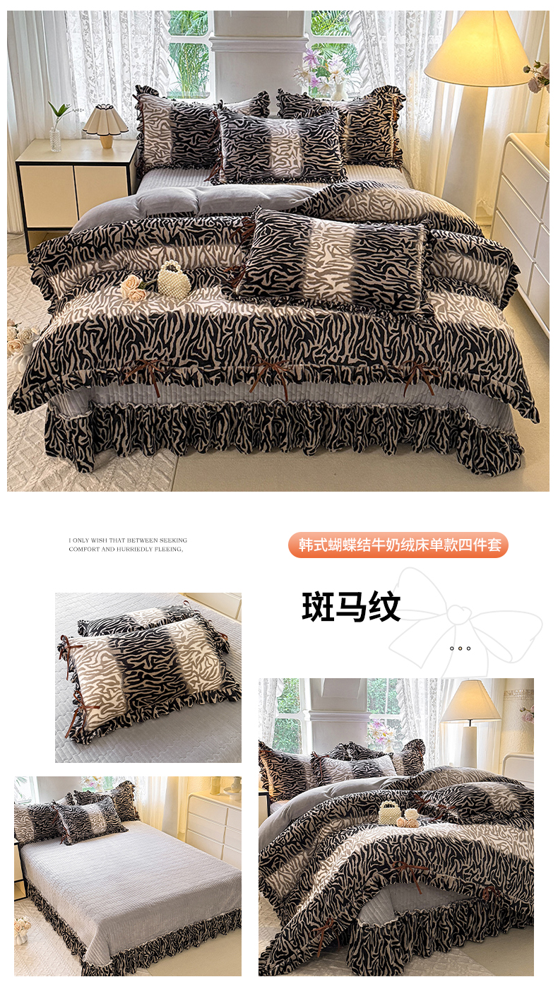 (总)韩约家纺 2024新款牛奶绒花边款印花四件套,豹纹时尚,繁花,格调,花瑾,酷派熊,乐莹,丽贝卡,莉亚,米妮(粉),米妮(灰),妮点爱心,如伊,婷语花间,远黛