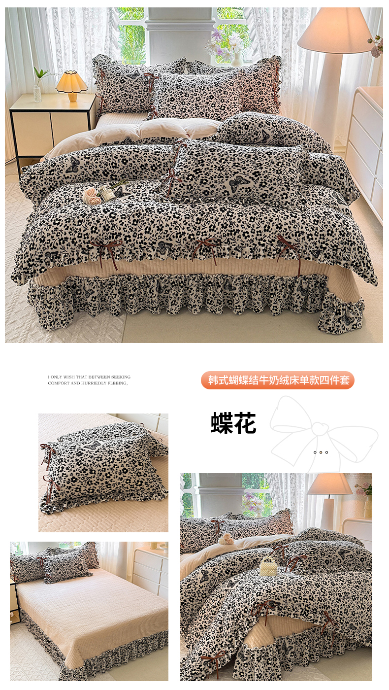 (总)韩约家纺 2025新款法式大花边印花牛奶绒床盖款四件套,黑萌萌 (床盖款),红波点(床盖款),艾美(床盖款),红萌萌(床盖款),波点(床盖款),黑波点(床盖款),豹纹(床盖款)