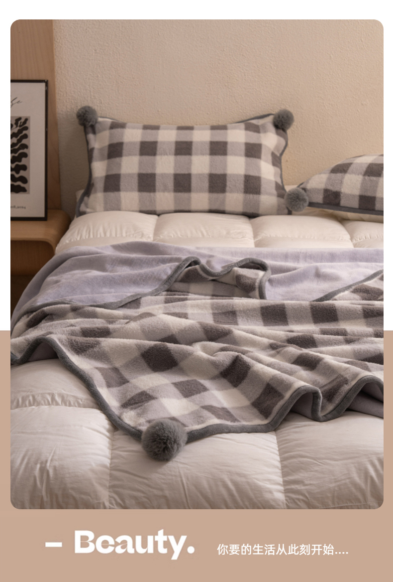 商品名称:寐居家纺 2025新款羊圈绒双层复合毛毯毯子 方格-蓝