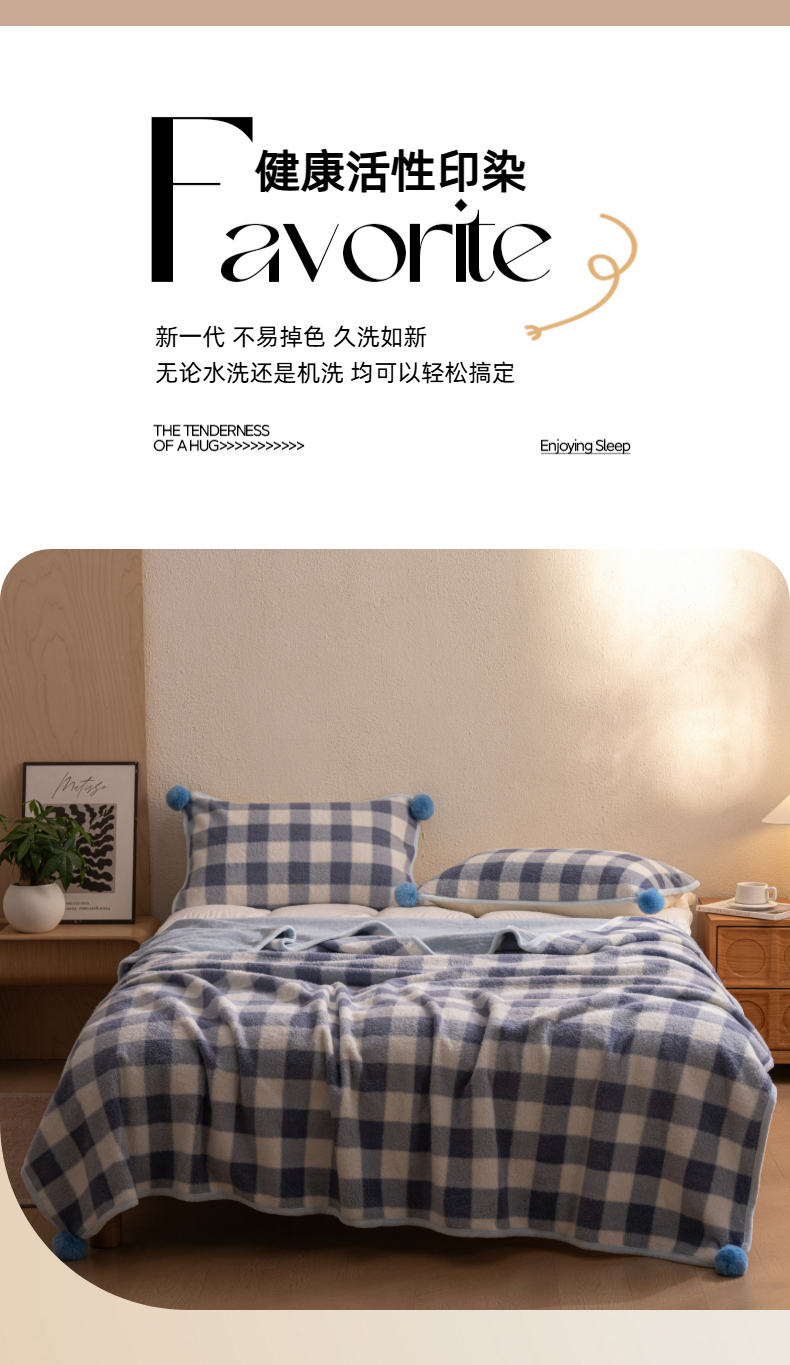 寐居家纺 2025新款羊圈绒双层复合毛毯毯子 方格-蓝
