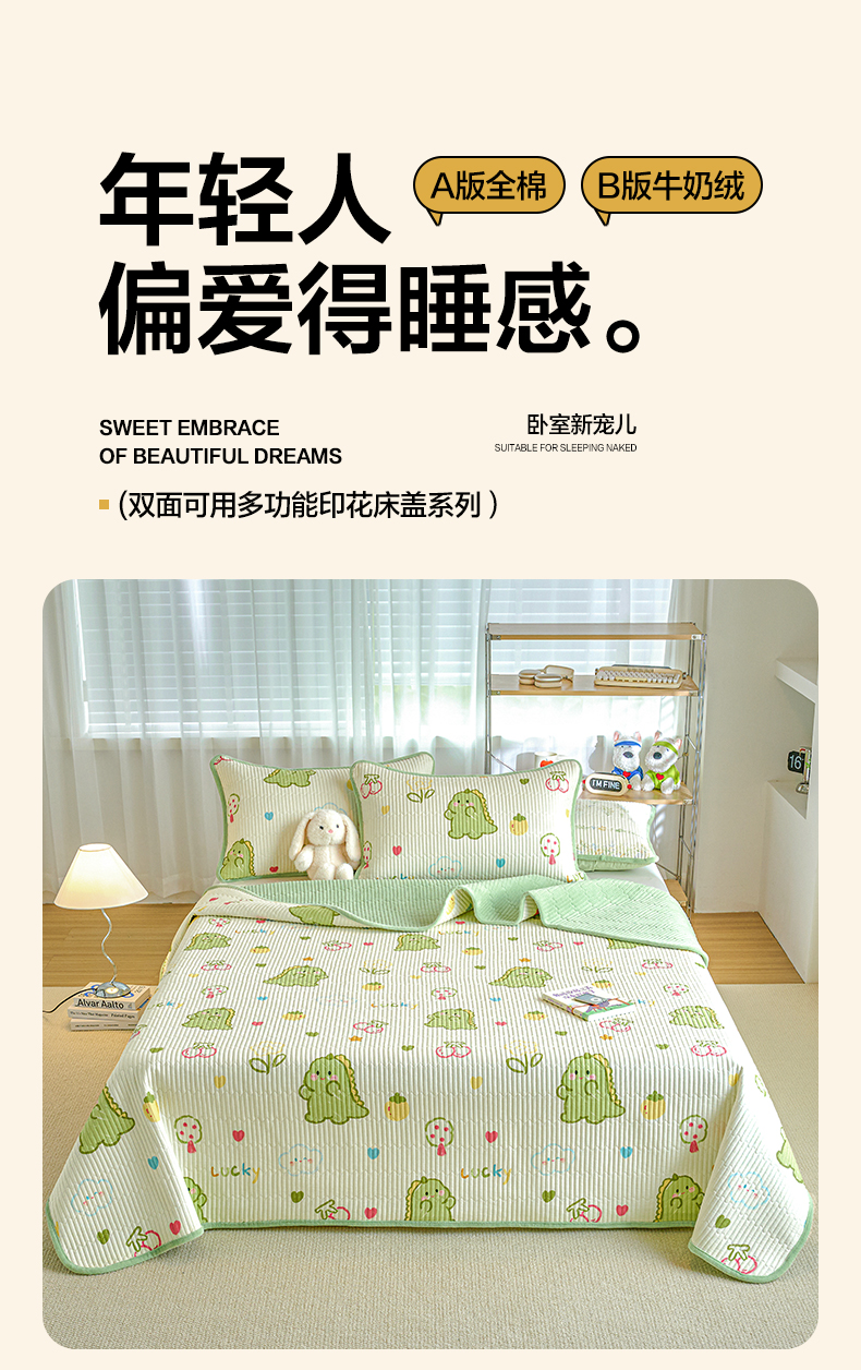小叮当家纺仓储工厂店 2025新款A版全棉B版牛奶绒床盖系列单床盖床盖单件 幸运独角龙(A棉B绒)