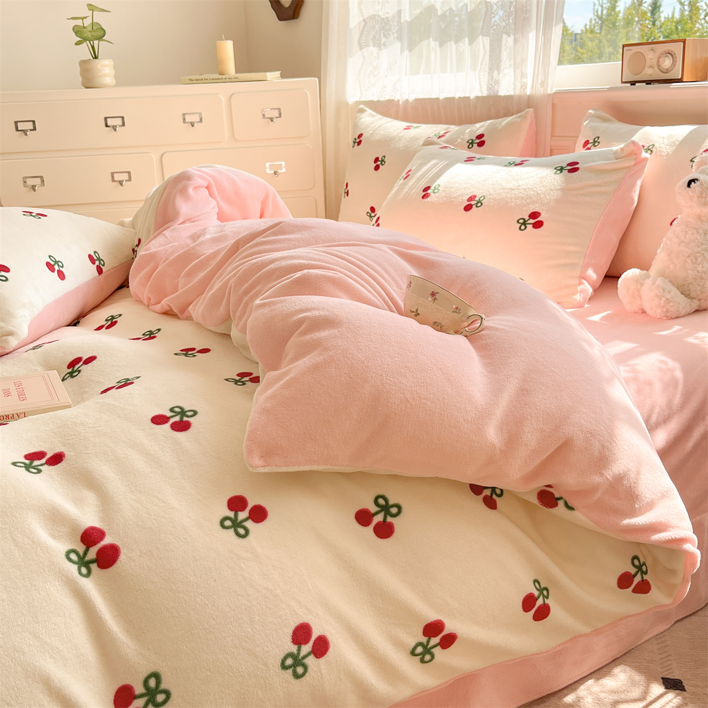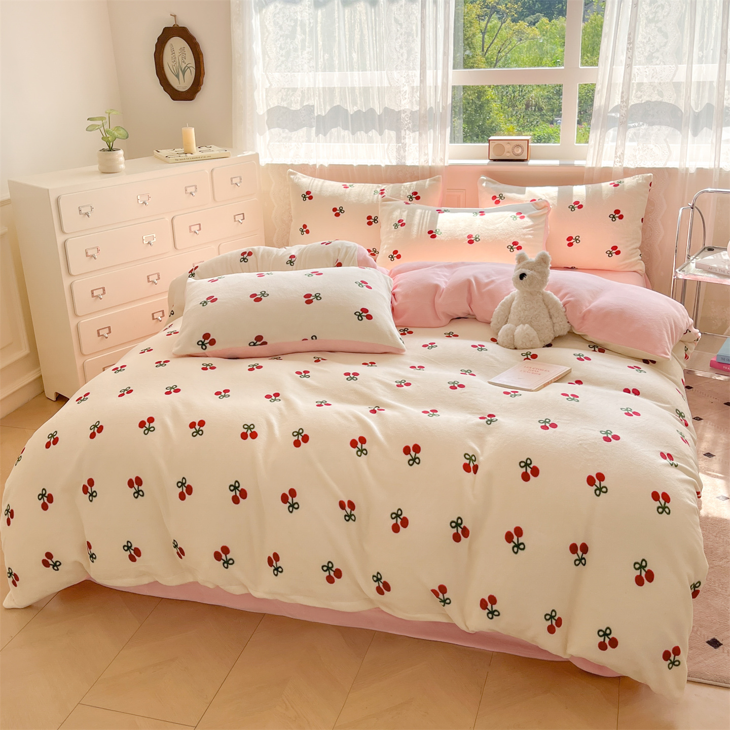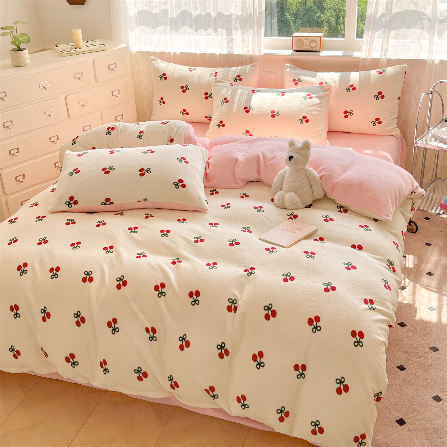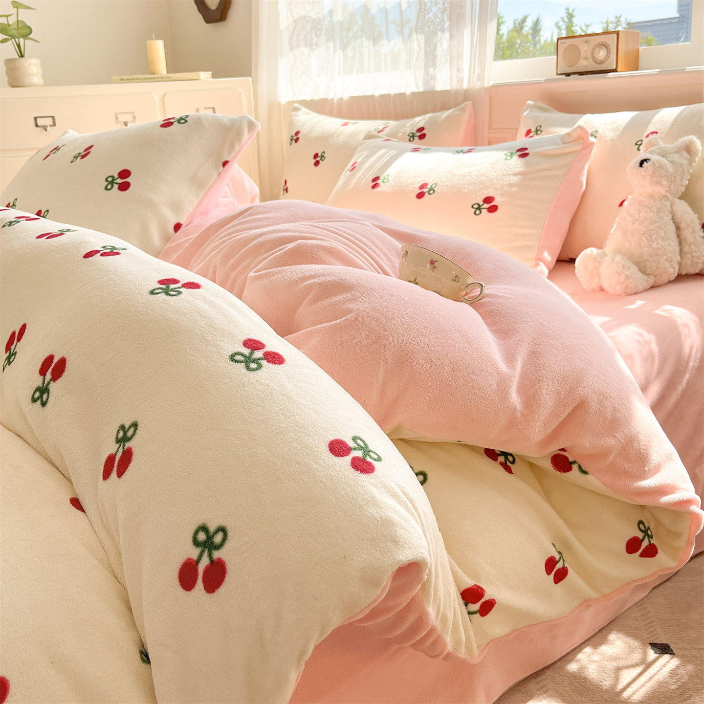 商品名称:欧尚家纺 2025新款跑量牛奶绒四件套 樱桃粉