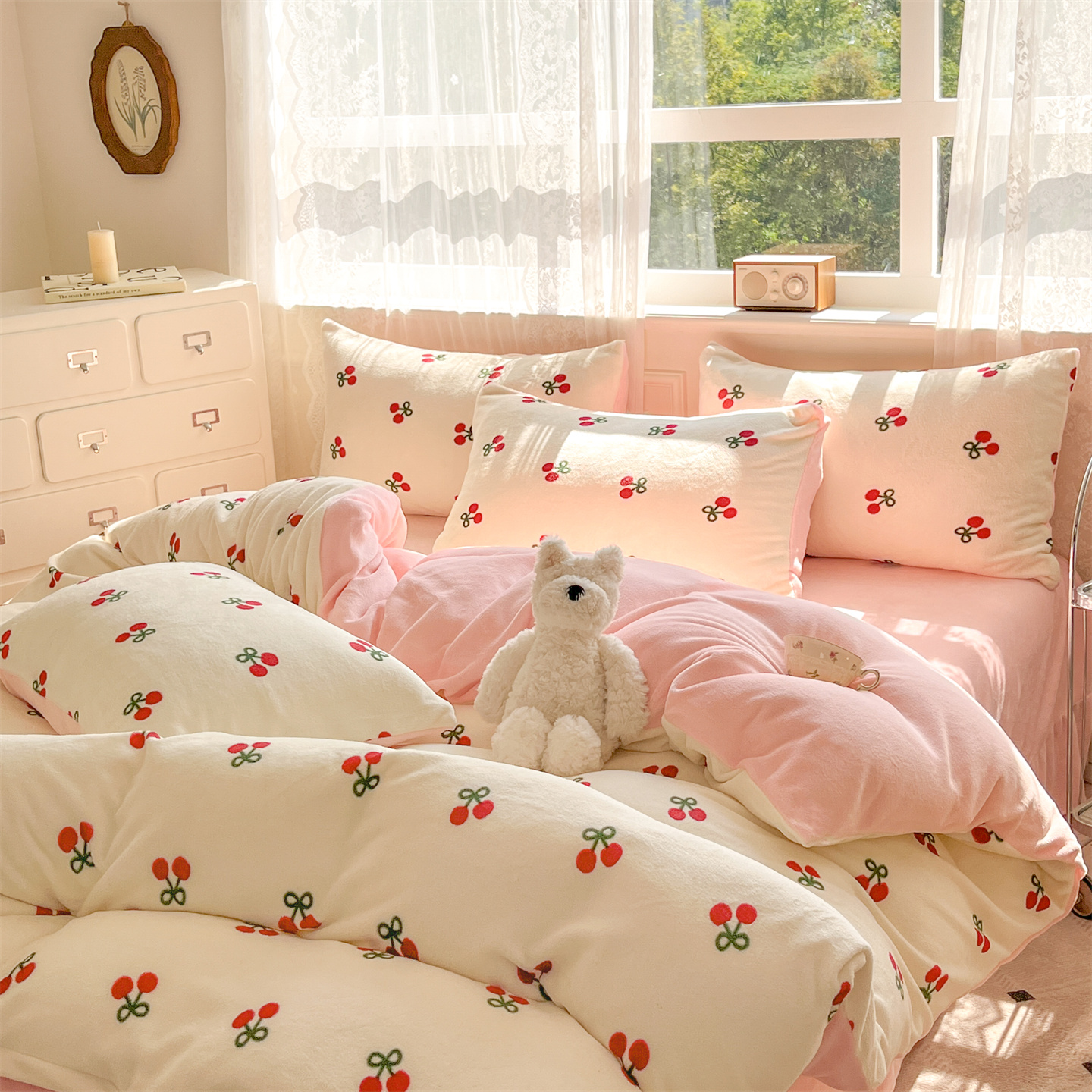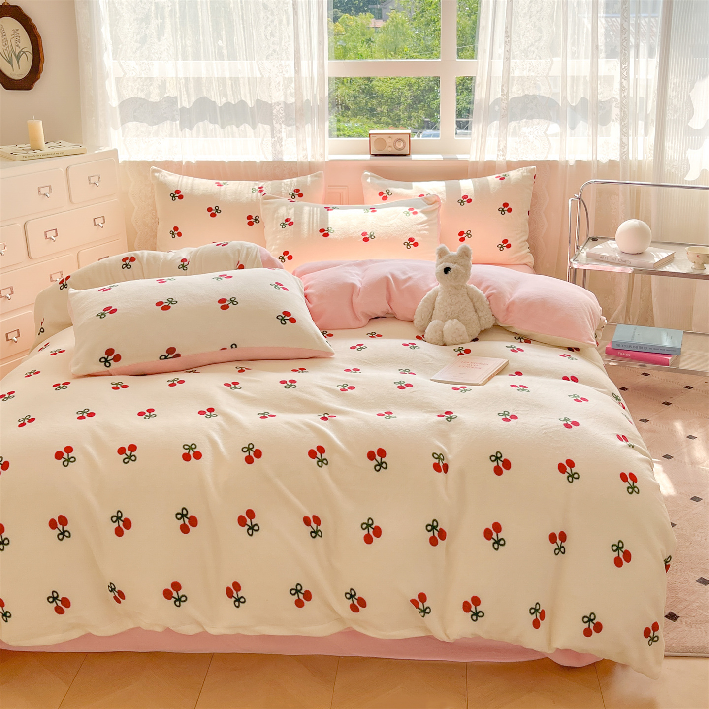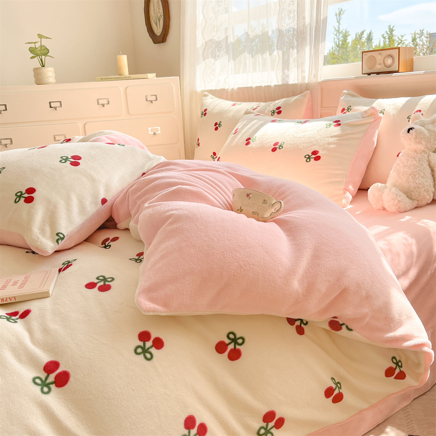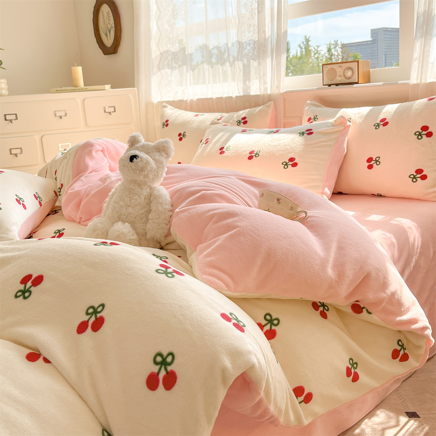 商品名称:欧尚家纺 2025新款跑量牛奶绒四件套 樱桃粉