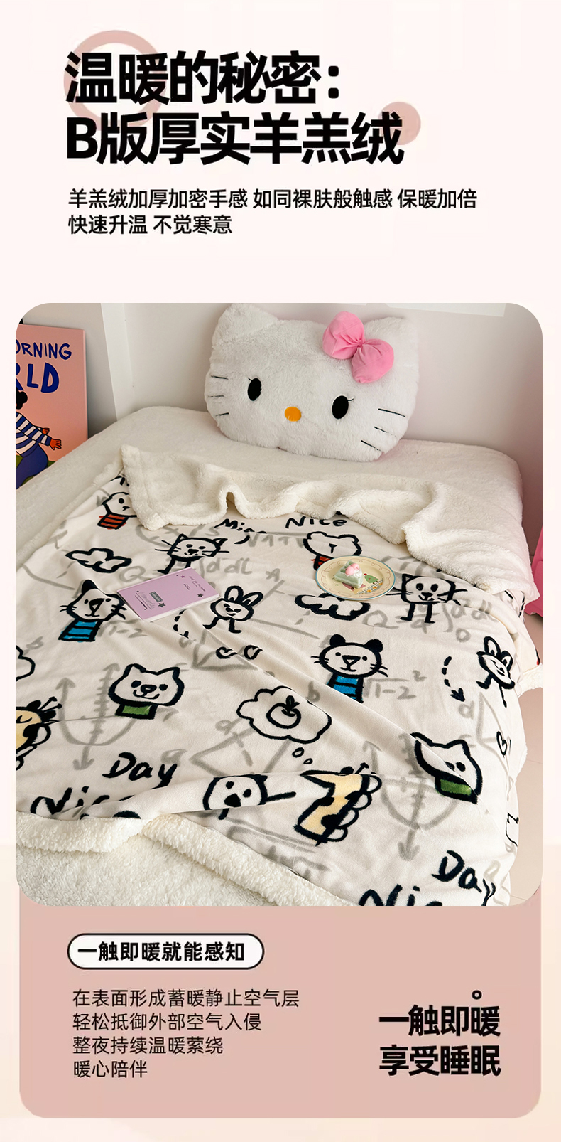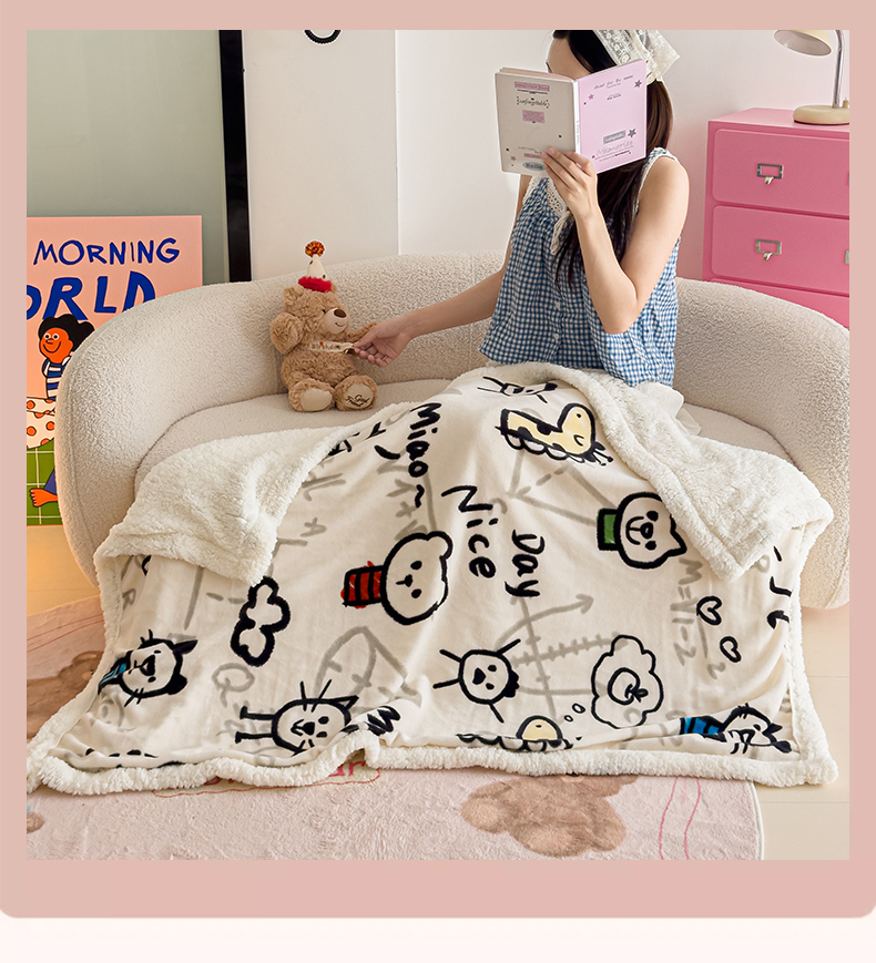 商品名称:艾特你 2025新款ins羊羔绒牛奶绒可被套休闲毯单被套-毯子图 几何世界