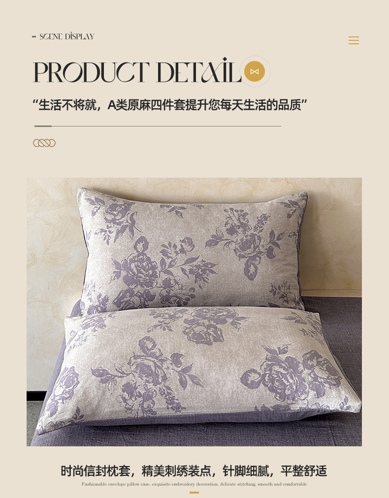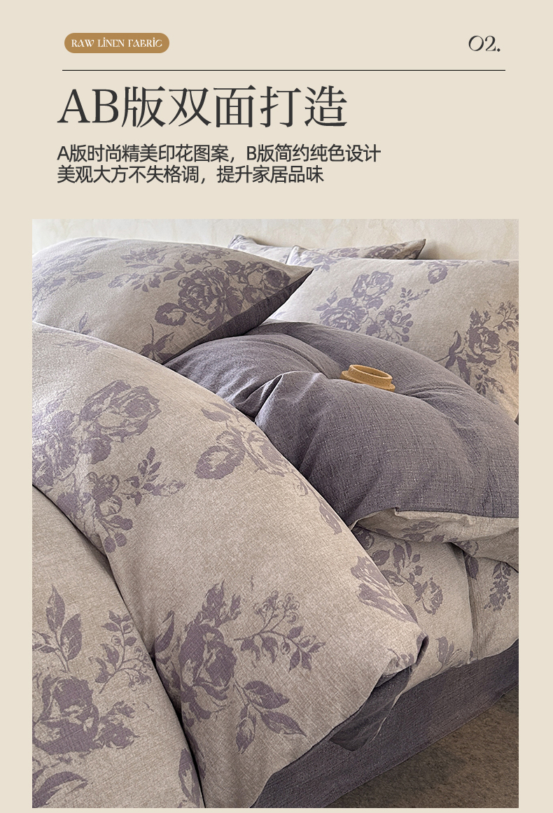 商品名称:如约 2025新款A类亲肤水洗原麻印花四件套 风木槿紫