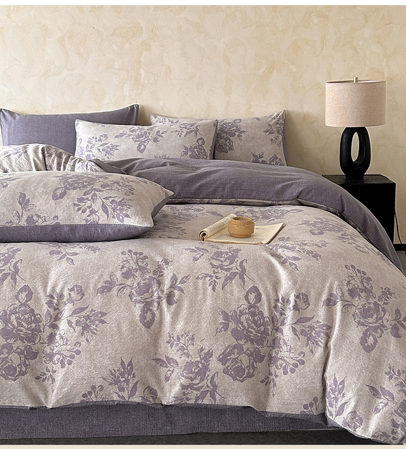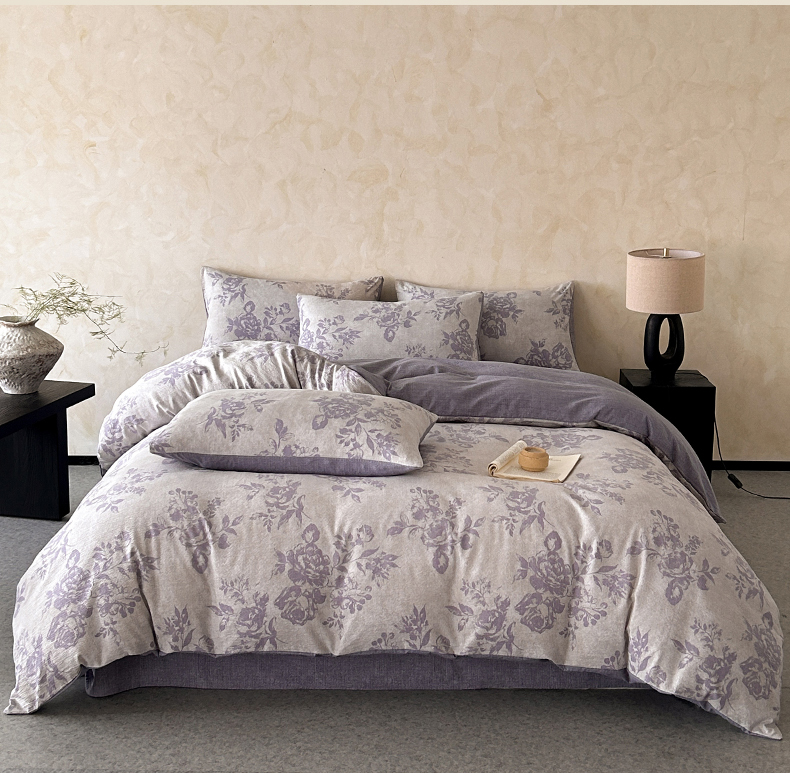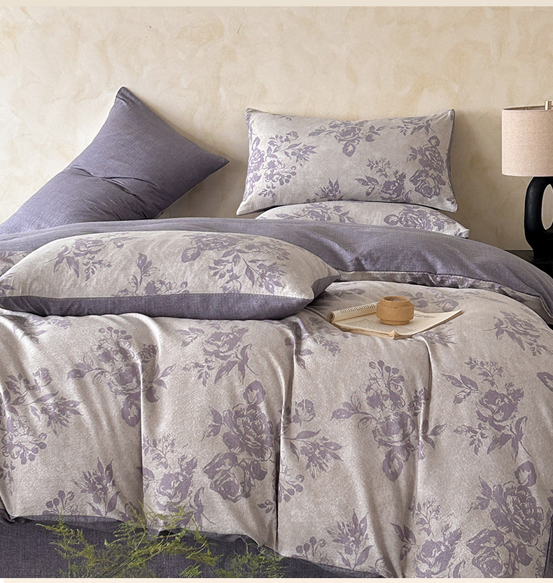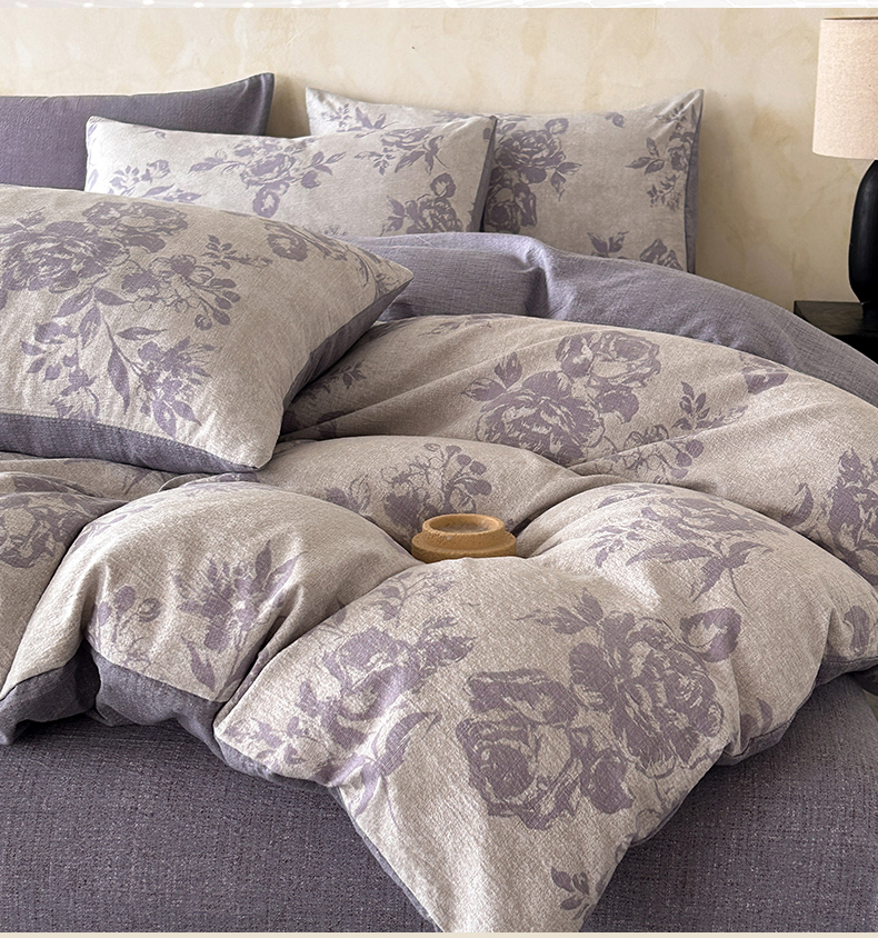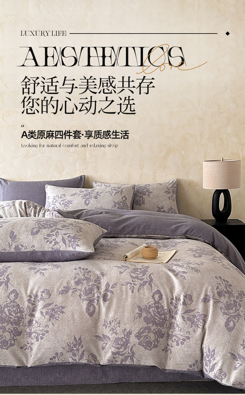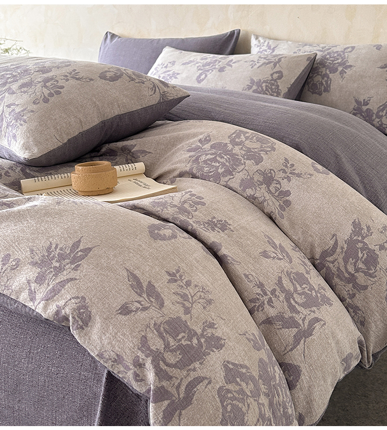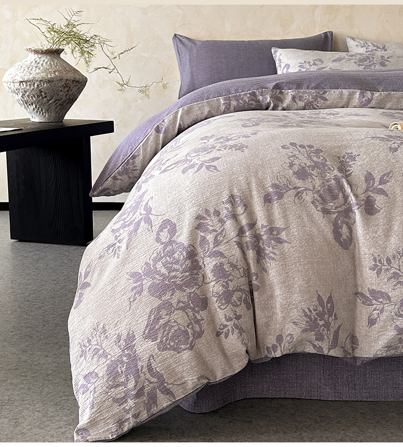 如约 2025新款A类亲肤水洗原麻印花四件套 风木槿紫
