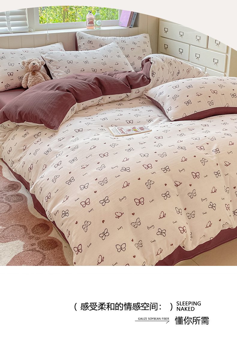 (总)如约 2025新款木棉双层纱印花四件套,小花蔷薇粉,春日来信,朝颜,邂逅,露华浓,草木集黄,写意兰,旧日告白,往事咖,罗格先生兰,小花巧克力棕,小花抹茶绿
