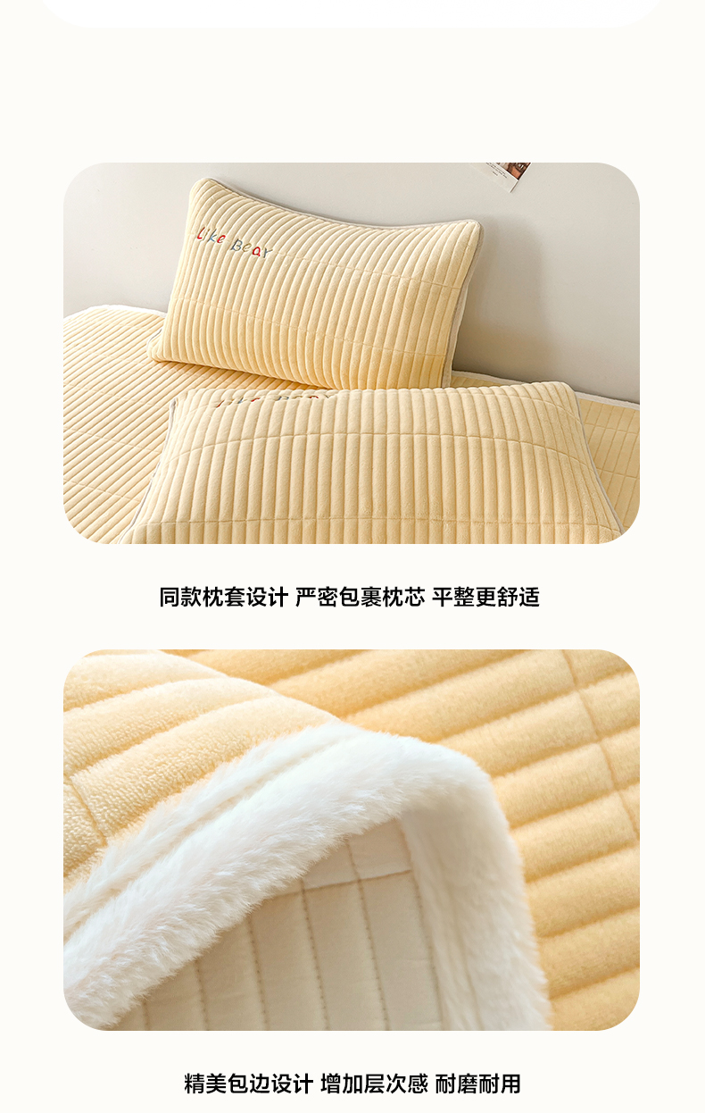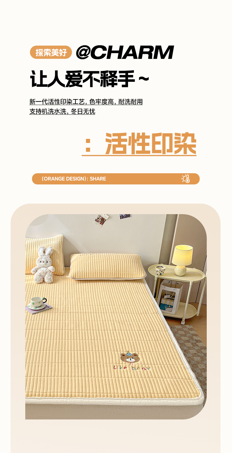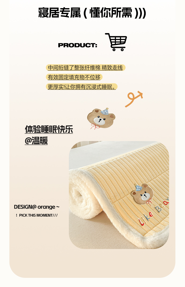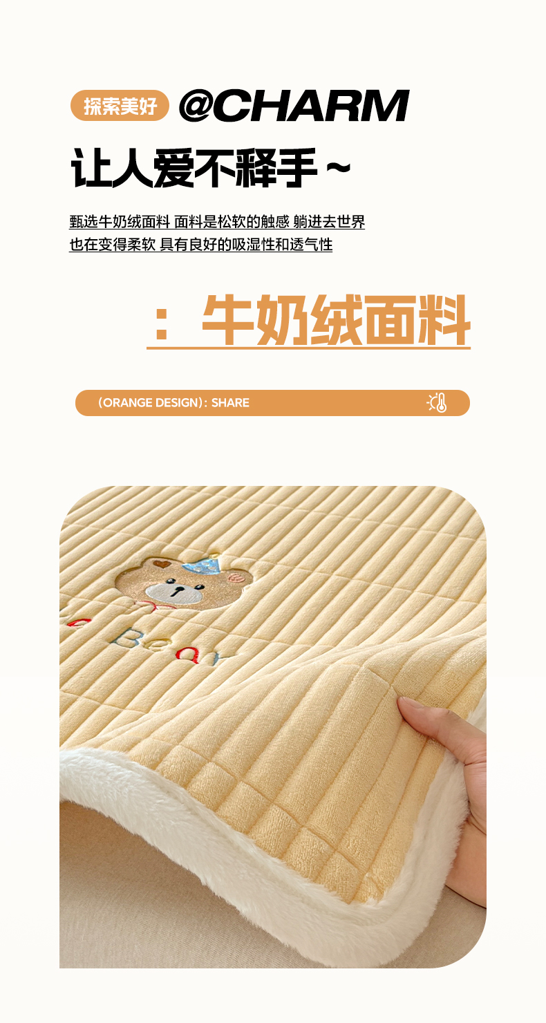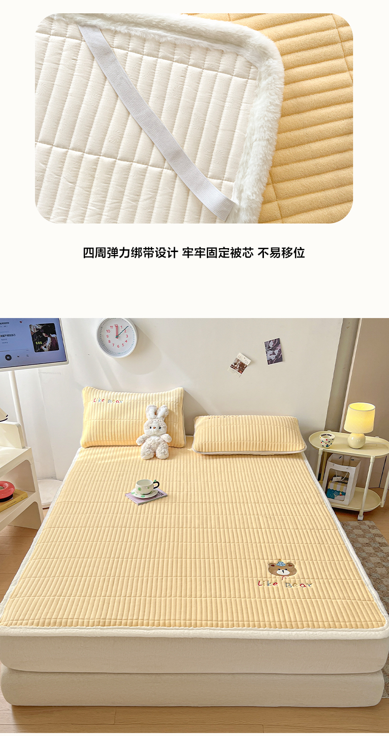 • 91家纺网 家纺一手货源 找家纺 摩妮卡 2025新款加厚保暖牛奶绒夹棉绣花床垫三件套 呆呆熊-黄