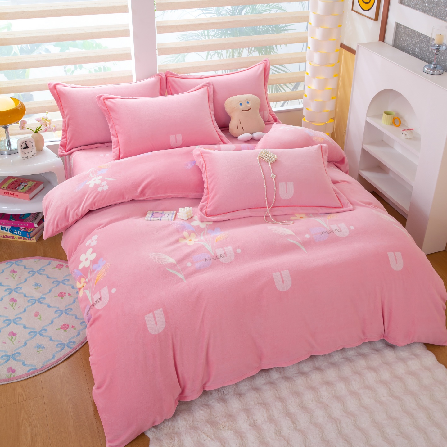 (总)卡迪亚家纺 2025新款牛奶绒床盖款荷叶边四件套-花颜,花颜-春湖绿,花颜-豆沙红,花颜-高级灰,花颜-活力蓝,花颜-魅力紫,花颜-抹茶绿,花颜-胭脂粉