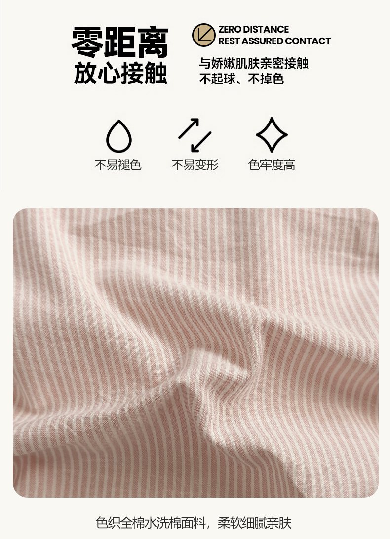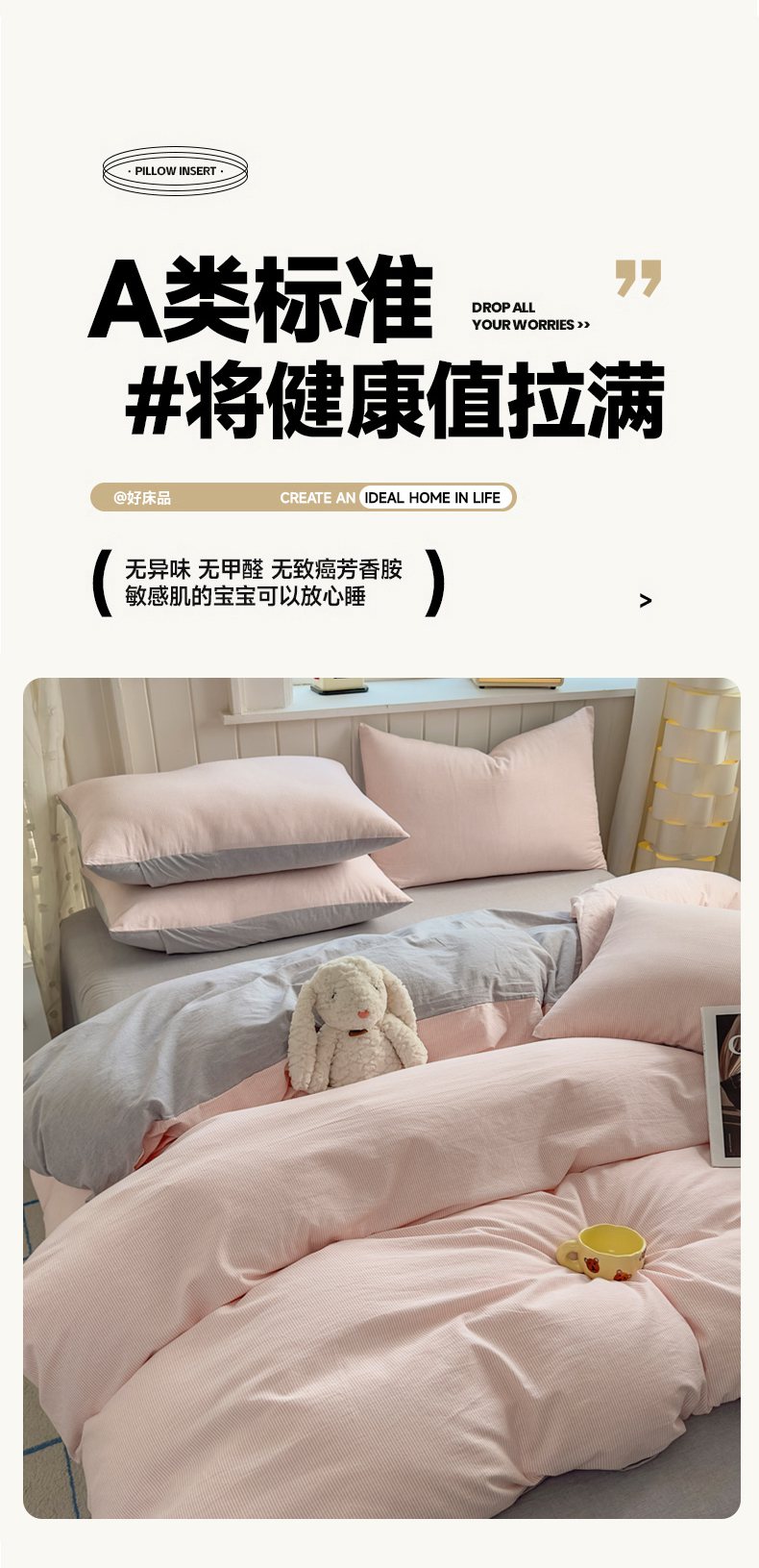 商品名称:宜家坊 2025新款A类全棉色织水洗棉单枕套系列 密条-粉灰