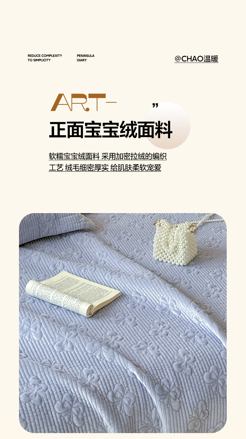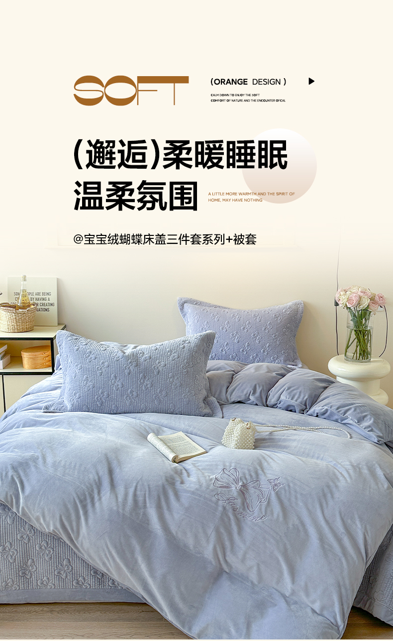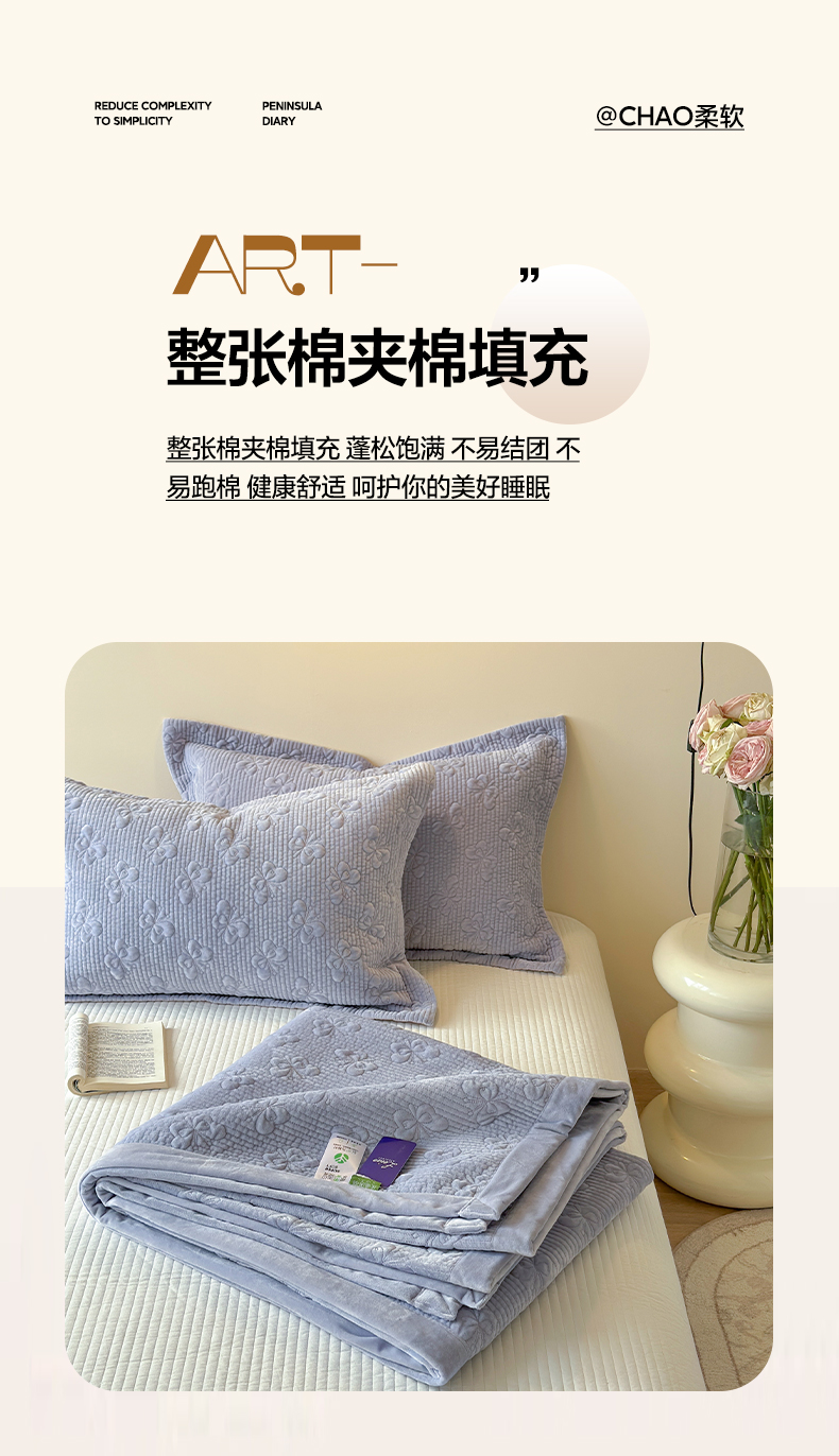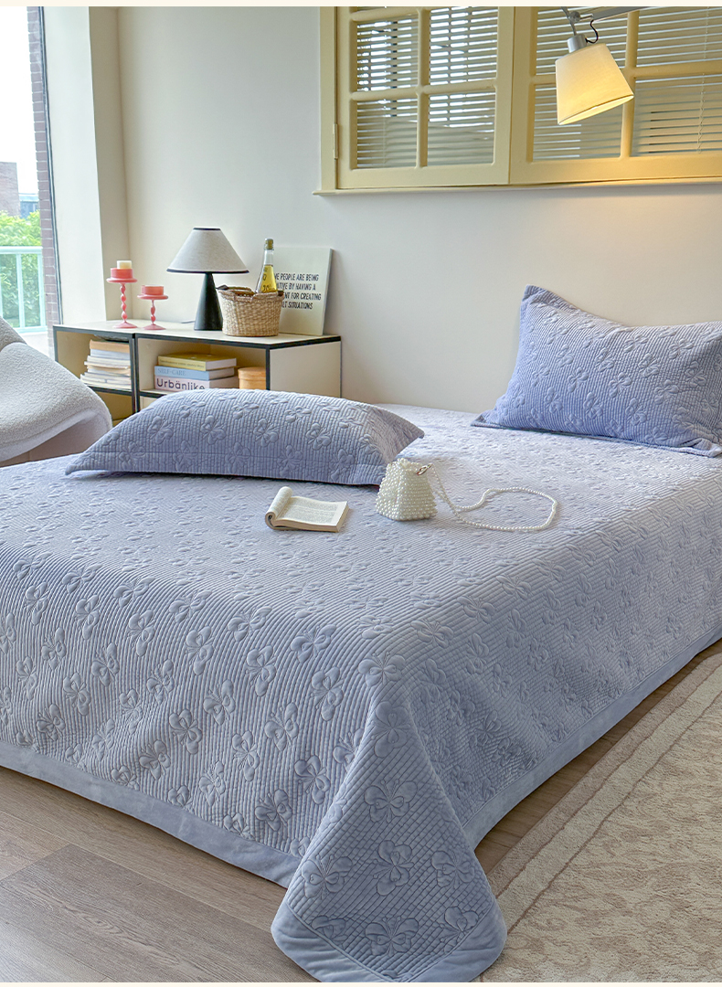 琳可家居 2025新款蝴蝶系列棉加绒床盖 绒蝴蝶-紫韵