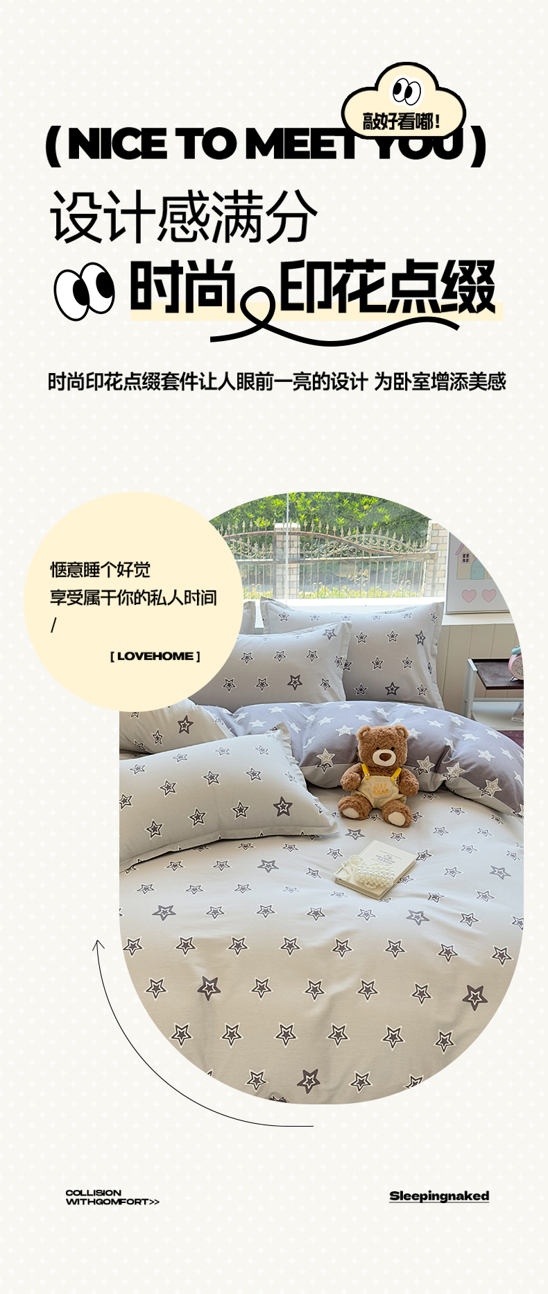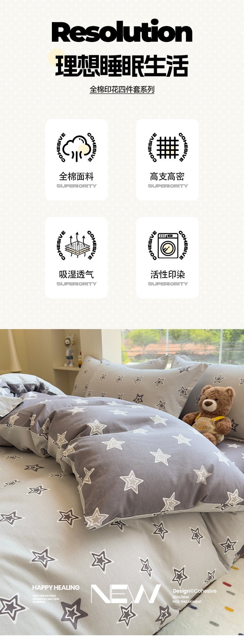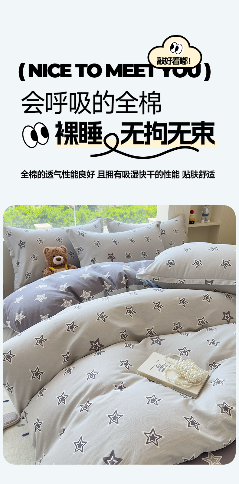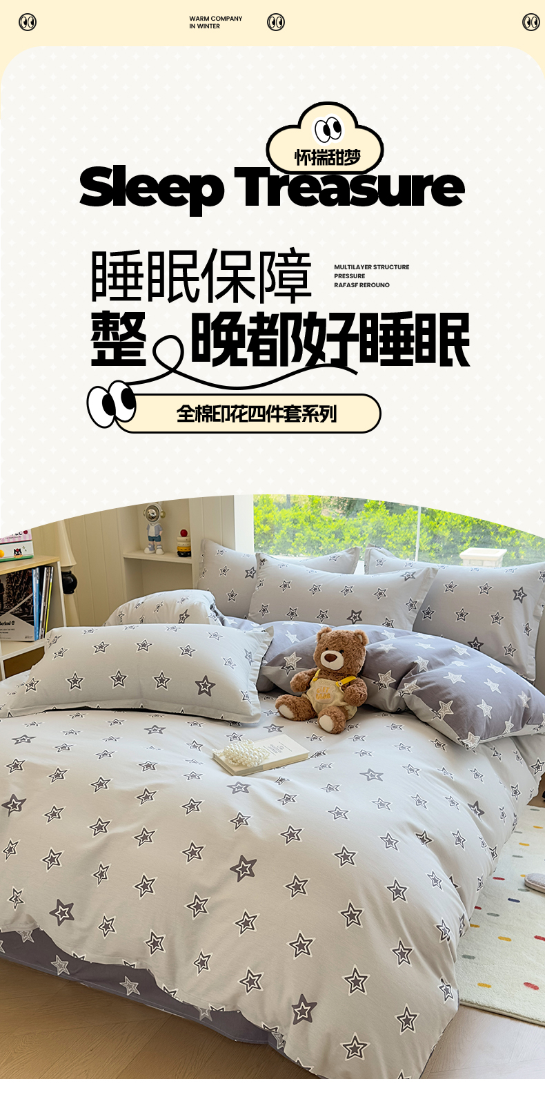 当前位置: 91家纺网 > 商品网购 > 床品套件 > 四件套 > 全棉普通四件套 > 鑫宇 2025新款全棉纯棉13372小清新印花四件套 金吉星