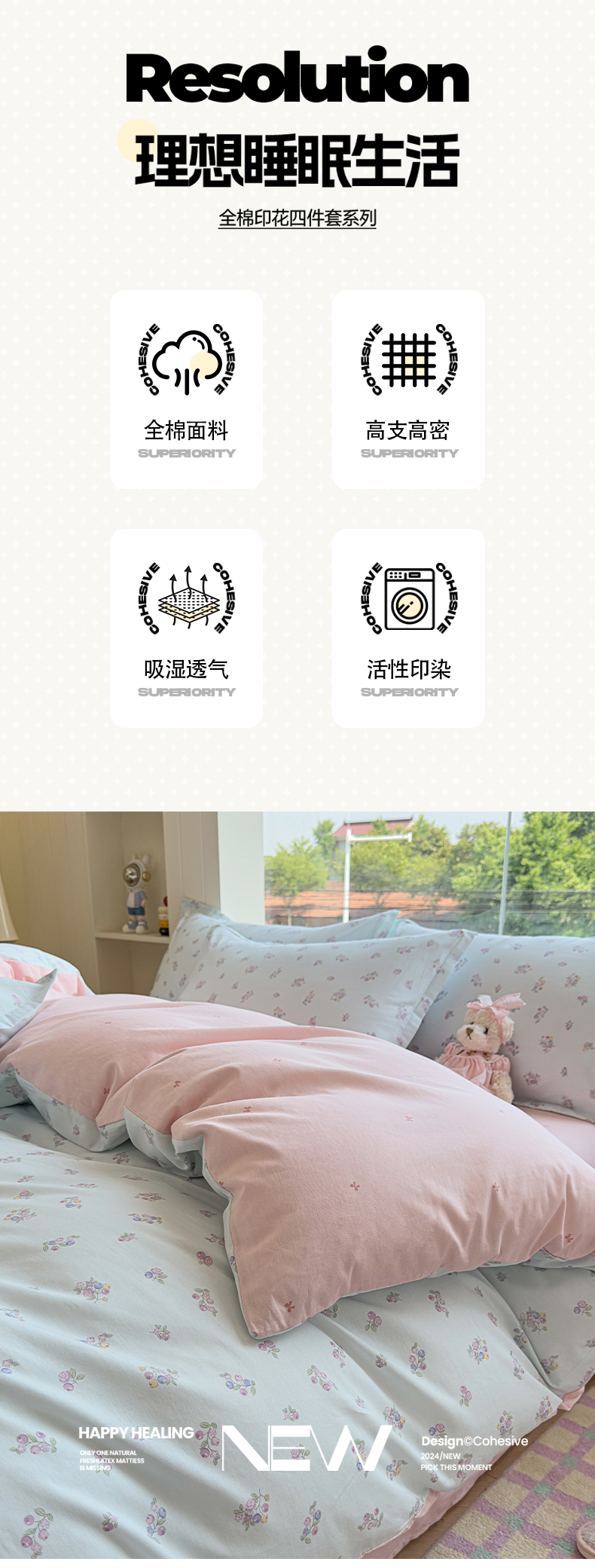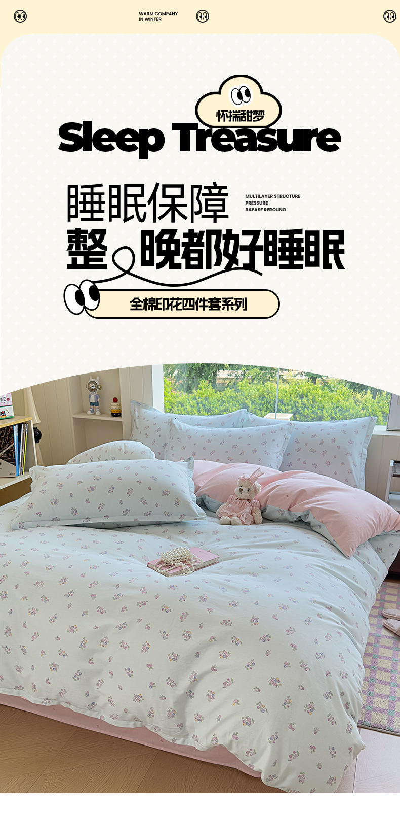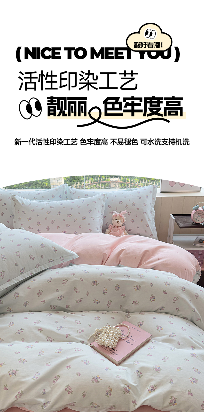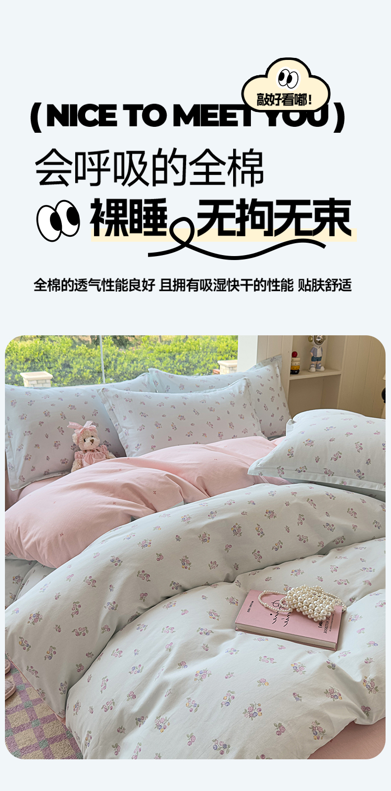 当前位置: 91家纺网 > 商品网购 > 床品套件 > 四件套 > 全棉普通四件套 > 鑫宇 2025新款全棉纯棉13372小清新印花四件套 清风花夏