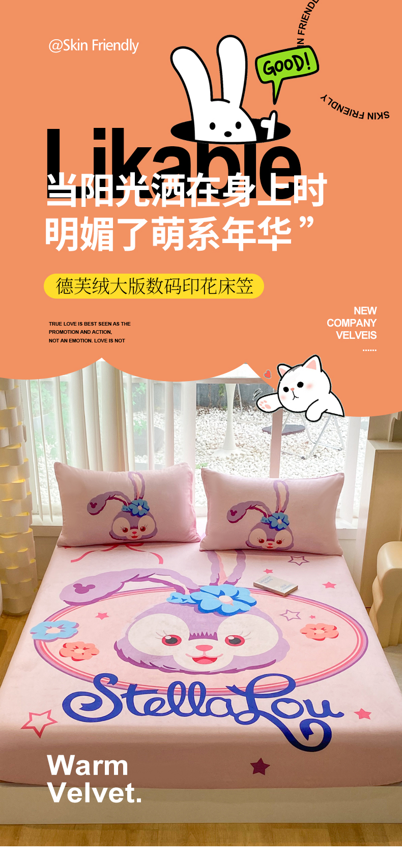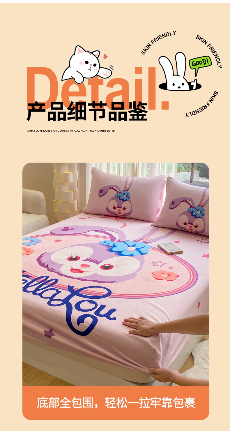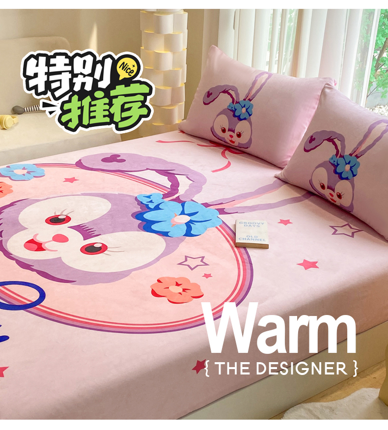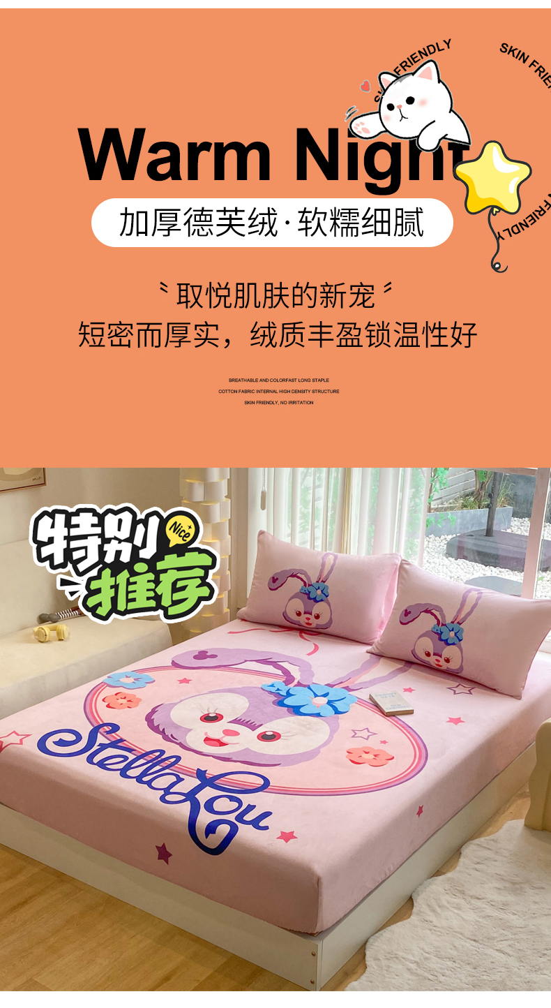 • 91家纺网 家纺一手货源 找家纺 一电 2025新款跨境电商床笠冬天德芙绒床笠单件加绒加厚绒床罩儿童学生宿舍床垫套床笠罩 可爱星黛露