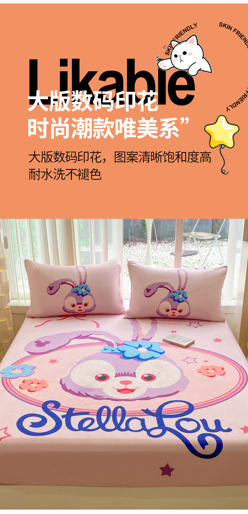 一电 2025新款跨境电商床笠冬天德芙绒床笠单件加绒加厚绒床罩儿童学生宿舍床垫套床笠罩 可爱星黛露