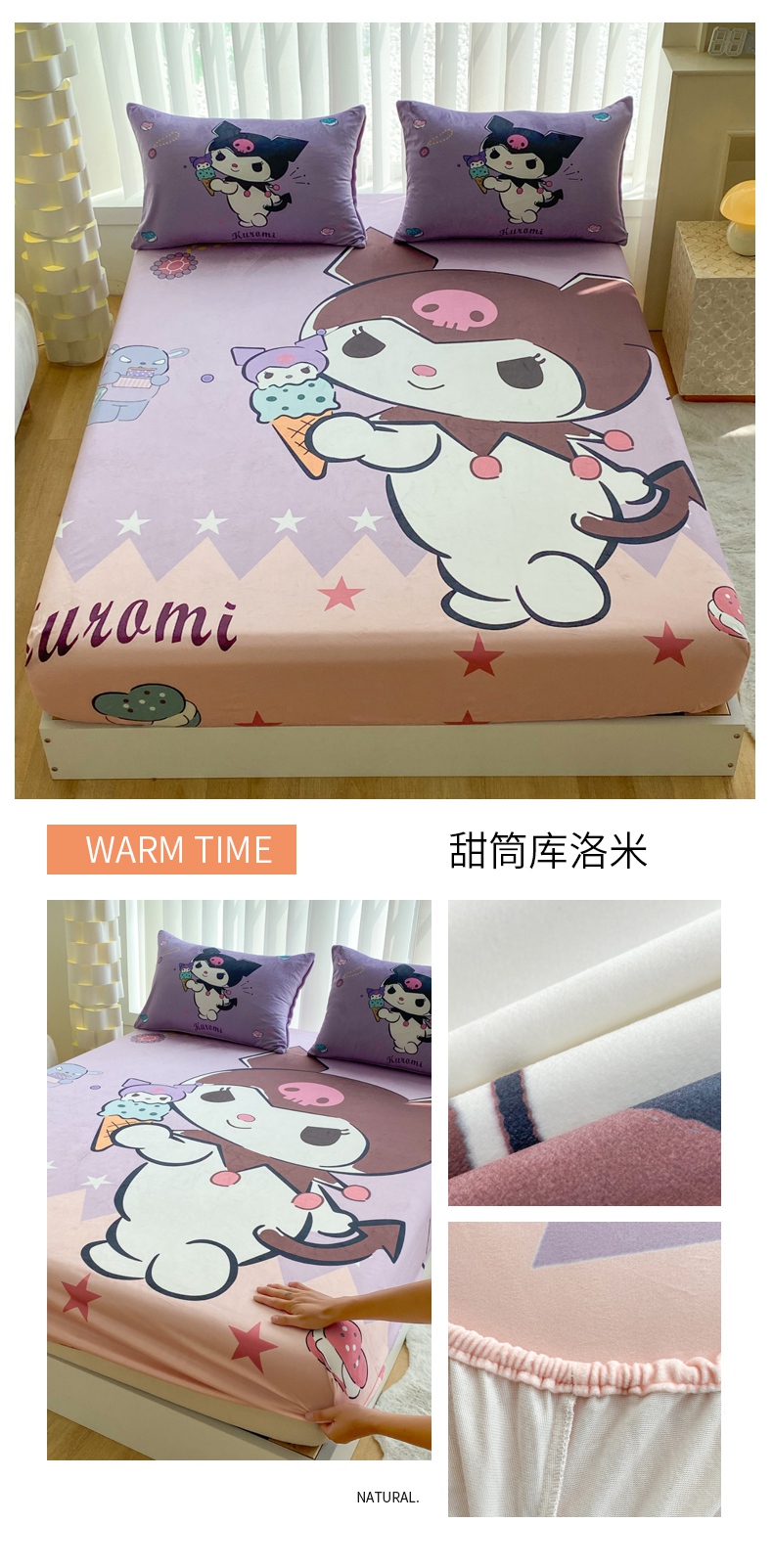 (总)一电 2025新款冬季双面牛奶珊瑚绒床上四件套法兰绒床品加绒被套床单三件套-第三批,公主库洛米,天使库洛米,甜筒库洛米,小兔子,圆点库洛米