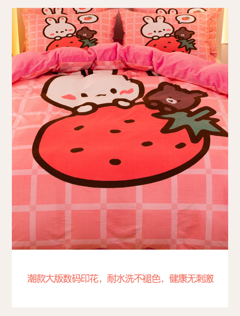 商品名称:一电 2025外贸跨境电商儿童卡通床上四件套亲肤牛奶绒学生三件床单被套加大珊瑚宝宝卡通单被套3 草莓动物