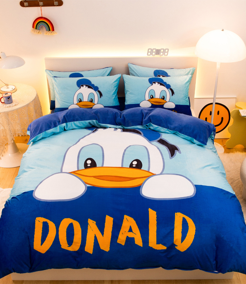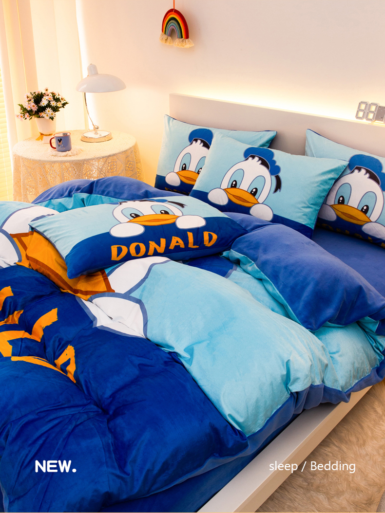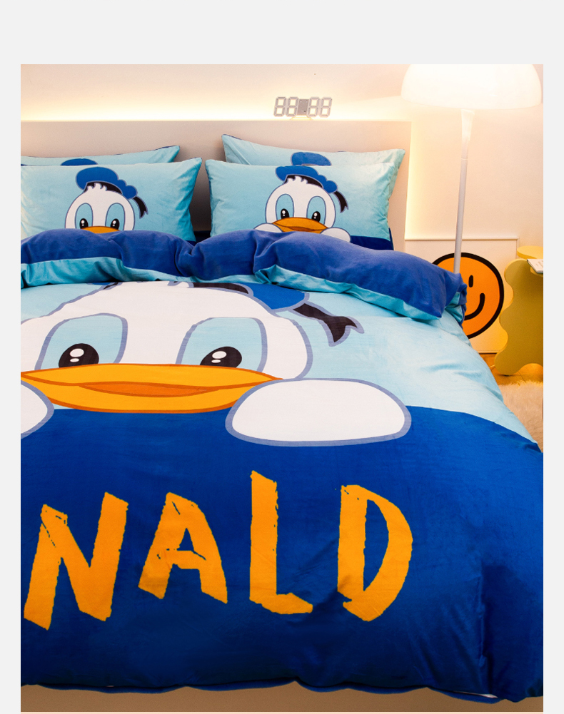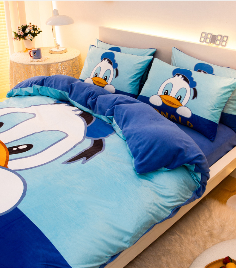 一电 2025外贸跨境电商儿童卡通床上四件套亲肤牛奶绒学生三件床单被套加大珊瑚宝宝卡通单被套 起立