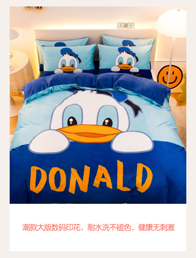 商品名称:一电 2025外贸跨境电商儿童卡通床上四件套亲肤牛奶绒学生三件床单被套加大珊瑚宝宝卡通单被套 起立